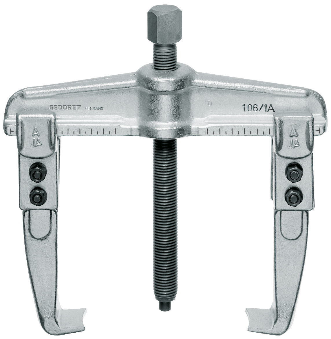 Overený model na bezpečné a rýchle demontovanie tanierov, kolies, guľkových ložísk atď., Silná, kovaná matrica konštrukcia, Regulačná škála na rovnomerné nastavenie hákov ťahadla. Umožňuje centrálny a optimalizovaný ťah aj pri najväčších ťahových silách, Môže byť použitý ako vonkajší a vnútorný ťahadlo zmenou polohy hákov, Vymeniteľné háky sú k dispozícii pre niekoľko hĺbok uchytenia, Možnosť doplnenia o hydraulické vreteno