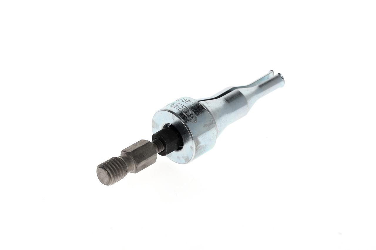Do mimoriadne tesných guľkových ložísk, krúžkov, puzdier a tesniacich krúžkov (Simmerringe®), Režim práce: Vsuňte vnútorný ťahák do ložiska a zašróbujte vreteno. Ostré hrany mušle sa zasúvajú za časť, ktorá má byť vytiahnutá. Až potom pripevnite oporu na stôl. Nastavte nohy paralelne k vretenu, čím vytvoríte pevnú jednotku. Vzor sa môže líšiť od zobrazeného na obrázku. Môže sa používať s kladivom s posuvom alebo protiľahlým podperom.