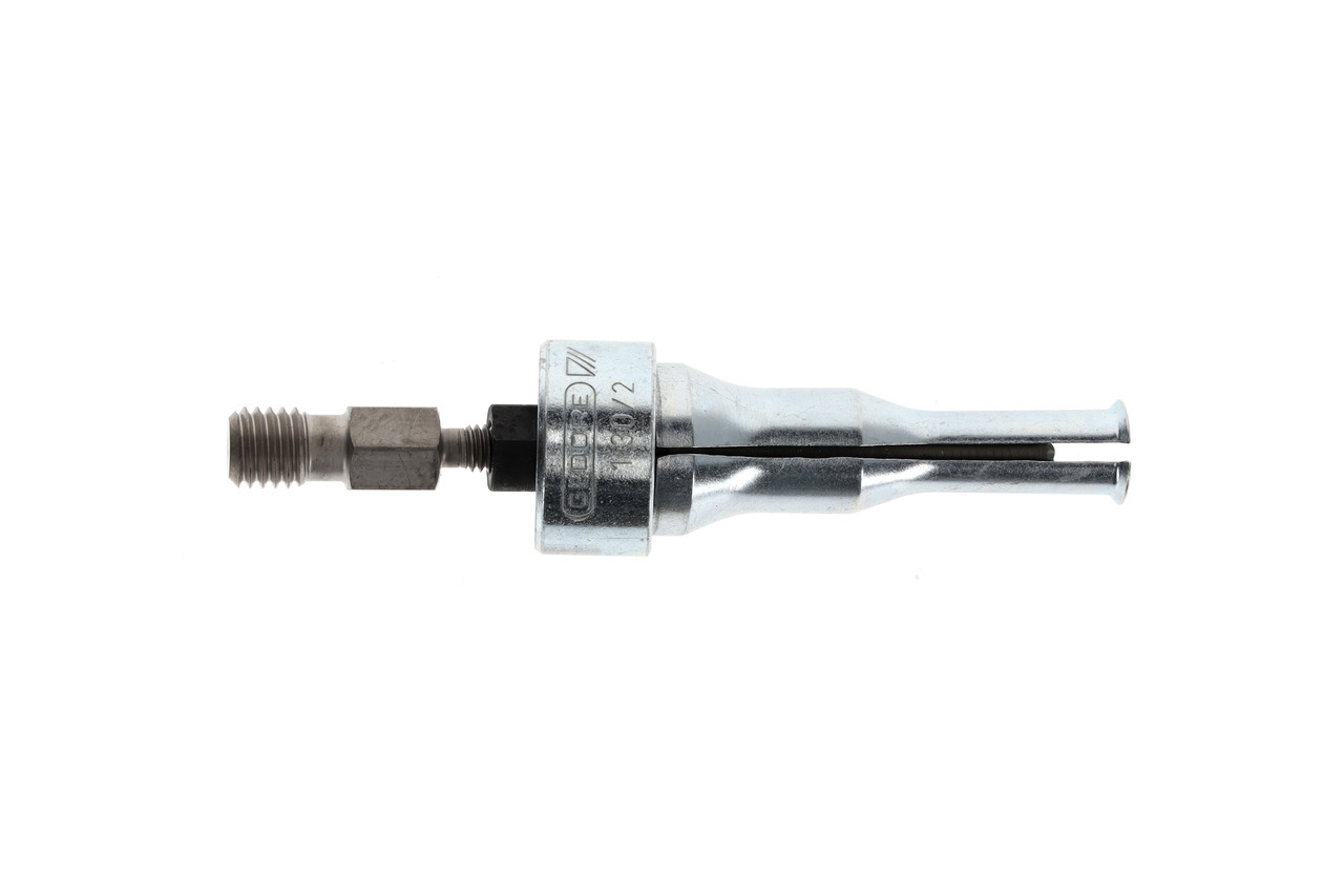 Do mimoriadne tesných guľkových ložísk, krúžkov, puzdier a tesniacich krúžkov (Simmerringe®), Spôsob práce: Vsuňte vnútorný ťahák do ložiska a zašróbujte vreteno. Ostré hrany mušle sa zasunú za časť, ktorá má byť vytiahnutá. Až potom pripevnite oporu na stôl. Nastavte nohy paralelne k vretenu, čím vytvoríte pevnú jednotku. Vzor sa môže líšiť od zobrazeného na fotografii. Môže sa používať s kladivom na sklz alebo protiľahlou oporou.