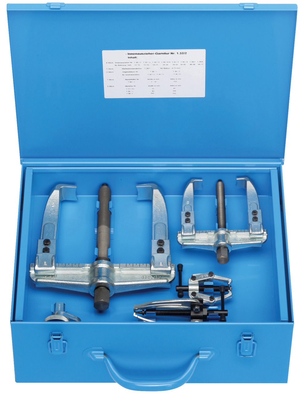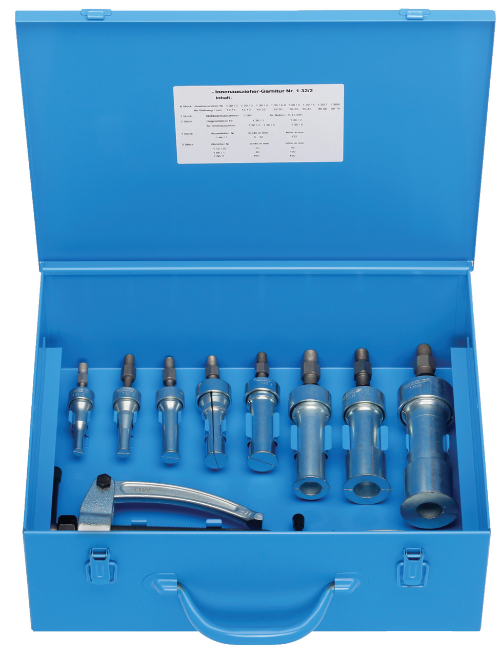 - Zoznam dielov (text): 8 Vnútorný sťahovač 12-70 mm, č. 1.30/2 - 1.30/8 2 podpery počítadla č. 1.36/1 - 1.36/2 1 Sťahovač s veľmi úzkym hákom č. 1.19/0XS 1 sťahovač pólov batérie č. 1.12/02 2 Sťahovače, 2-ramenné, č. 1.06/1 1.06/2 1 sťahovač kolíkov č. 1.28/1