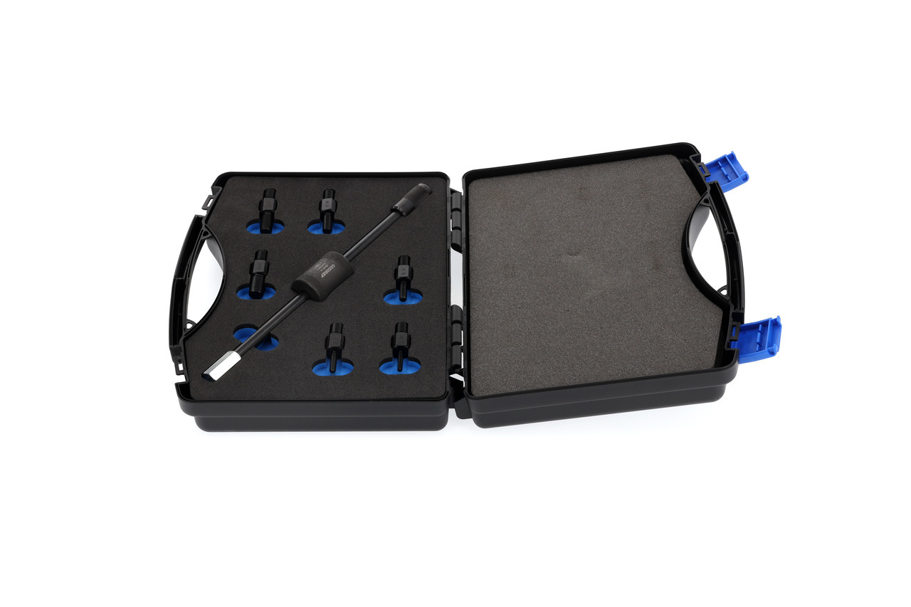 Šróbové adaptéry umožňujú napr. odstránenie šróbových zátok z šróbového otvoru, č. 1.81/K-1: s kladivom s posuvným mechanizmom č. 1.35/1, tyčou 230 mm a úderovou hmotnosťou 200 g, č. 1.81/K-12: s kladivom s posuvným mechanizmom č. 1.35/1A, tyčou 230 mm a úderovou hmotnosťou 700 g, adaptér M14x1,5, v plastovom kufríku, 275 x 229 x 83 mm