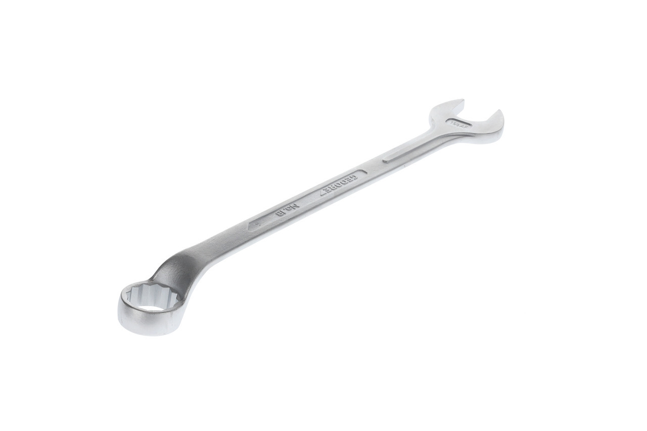 Konstrukcia podľa DIN 3113, forma B, ISO 3318, ISO 7738, S rovnými rozšíreniami kľúča, Oceľ chróm-vanádová 31CrV3, chrómovaná, Neoslepujúci, matný povrch, Starostlivo kované a odborne dokončené, Krúžok: kľukový a pod uhlom 10°, s profilom UD na jemné prenášanie výkonu, s 12-hranným krúžkom 1,3/8"., Čeľusť: presne zbrúsená na presný menovitý rozmer pre optimalizáciu styčných plôch, Vďaka štíhlej rukoväti vystuženej silnými rebrami na strane čeľustí sú zaručené najvyššie krútiace momenty, Preťaženie je signalizované deformáciou, Matice alebo skrutky ležiace hlboko môžu byť bezpečne aktivované pomocou odsadeného krúžka, Vysoká priemyselná kvalita pre najvyššie, dlhodobé zaťaženie