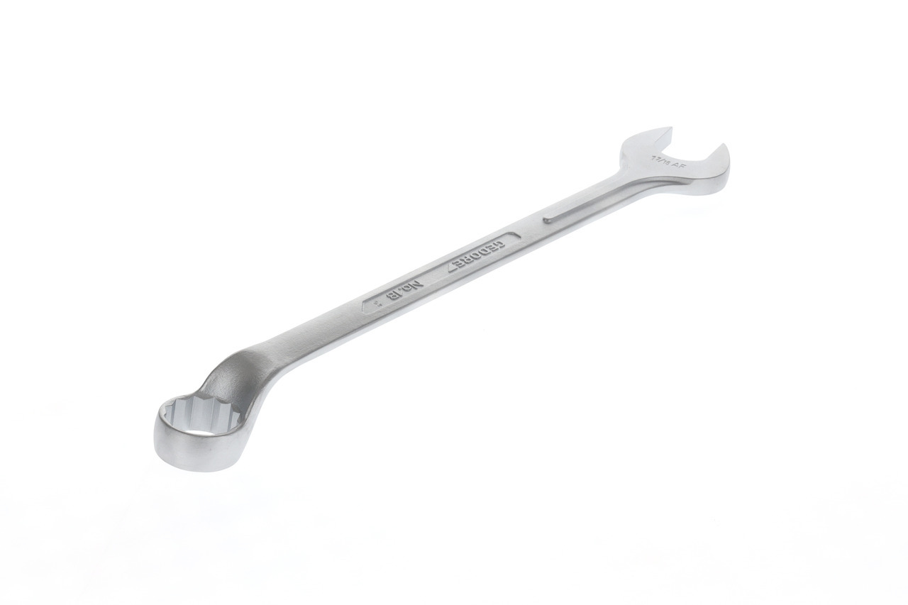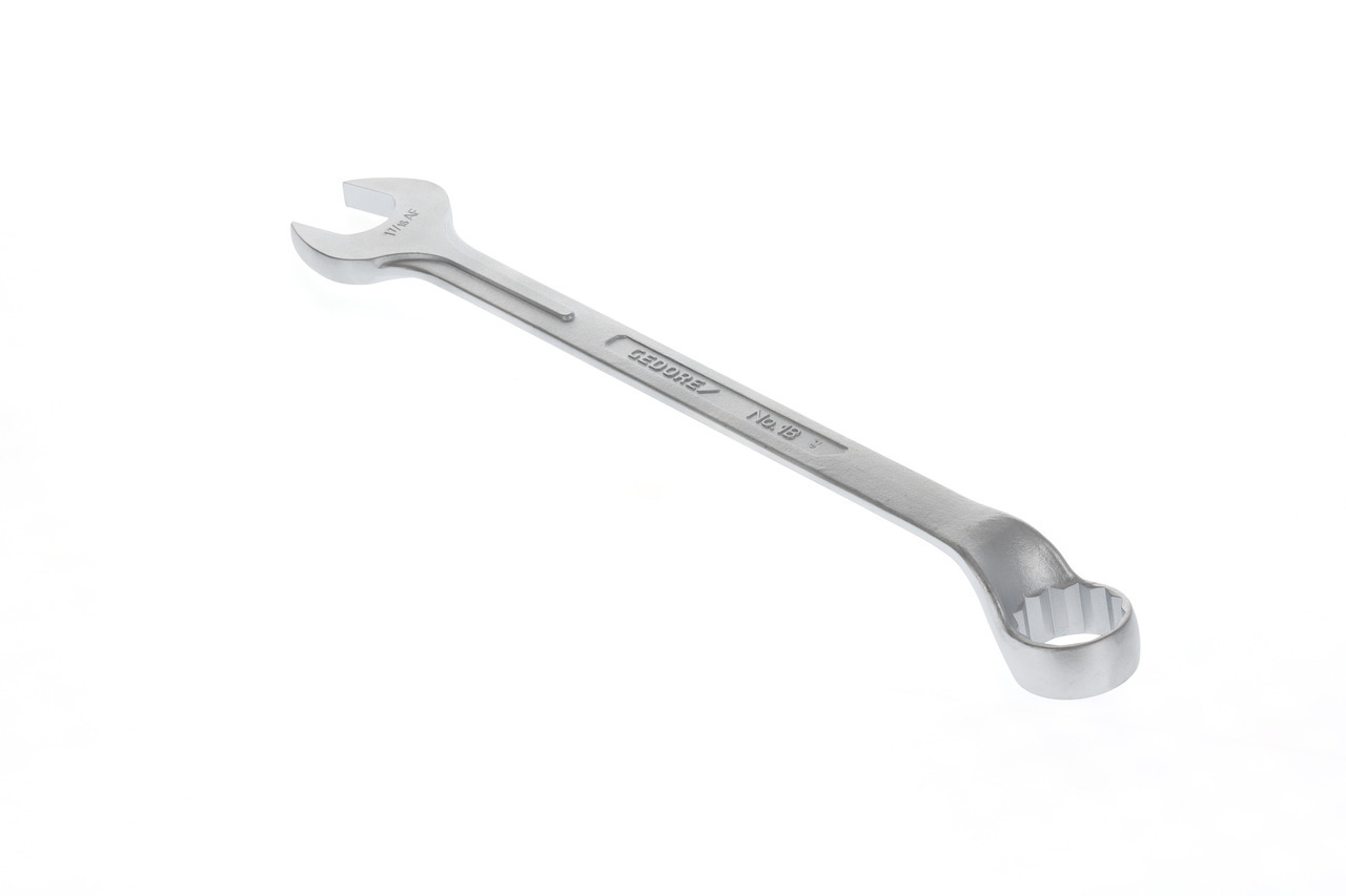 Konstrukcia podľa DIN 3113, forma B, ISO 3318, ISO 7738, S rovnými rozšíreniami kľúča, Oceľ chróm-vanádová 31CrV3, chrómovaná, Neoslňujúci, matný povrch, Starostlivo kované a odborne dokončené, Krúžok: kľukový a pod uhlom 10°, s profilom UD na jemné prenášanie výkonu, s 12-hranným krúžkom 1,3/8"., Čeľusť: presne zbrúsená na presný menovitý rozmer pre optimalizáciu styčných plôch, Vďaka štíhlej rukoväti vystuženej silnými rebrami po strane čeľustí sú zaručené najvyššie krútiace momenty, Preťaženie je signalizované deformáciou, Matice alebo skrutky ležiace hlboko môžu byť bezpečne aktivované pomocou odsadeného krúžka, Vysoká priemyselná kvalita pre najvyššie, dlhodobé zaťaženie