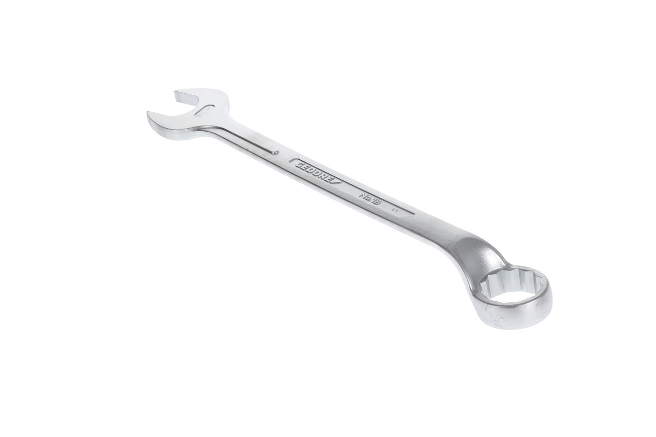 Konstrukcia podľa DIN 3113, forma B, ISO 3318, ISO 7738, S rovnými rozšíreniami kľúča, Oceľ chróm-vanádová 31CrV3, chrómaná, Neoslňujúci, matný povrch, Starostlivo kované a odborne dokončené, Krúžok: kľukový a pod uhlom 10°, s profilom UD na jemné prenášanie výkonu, s 12-hranným krúžkom 1,3/8"., Čeľusť: presne obrobená na presný menovitý rozmer pre optimalizáciu styčných plôch, Vďaka štíhlej rukoväti vystuženej silnými rebrami na strane čeľustí sú zaručené najvyššie krútiace momenty, Preťaženie je signalizované deformáciou, Matice alebo skrutky ležiace hlboko môžu byť bezpečne aktivované pomocou odsadeného krúžka, Vysoká priemyselná kvalita pre najvyššie, dlhodobé zaťaženie