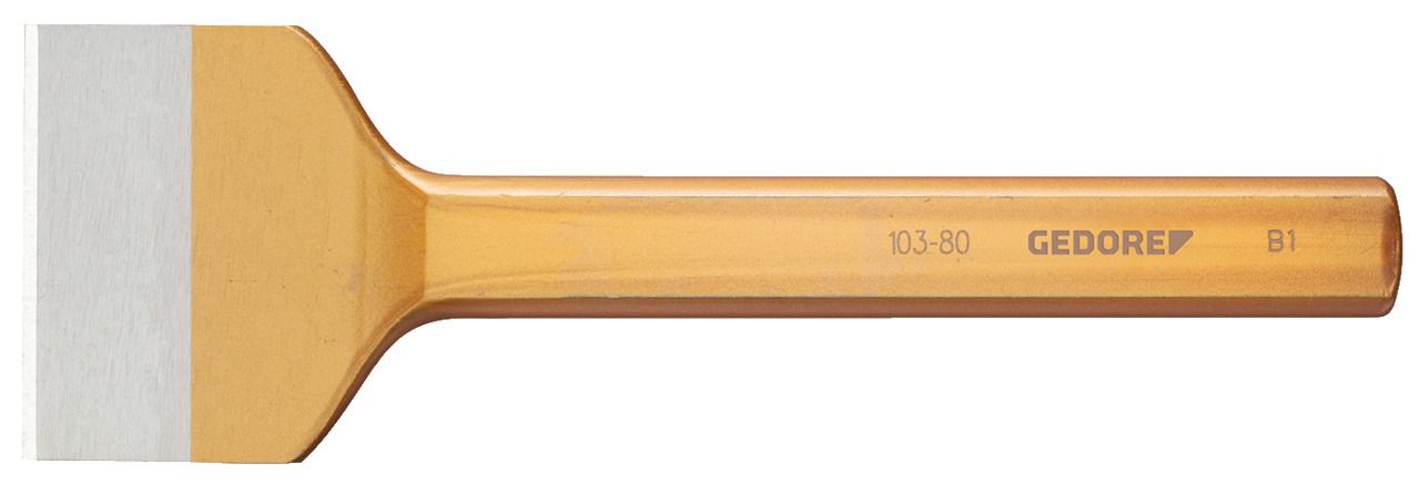 So širokým ostrím na vykonávanie drážok v spojkách stien, omietkach, dlaždiciach atď., Oceľ vanádiová, Jednotne kalená po celej dĺžke a starostlivo popustená, Hlavice úderové popustené indukčne