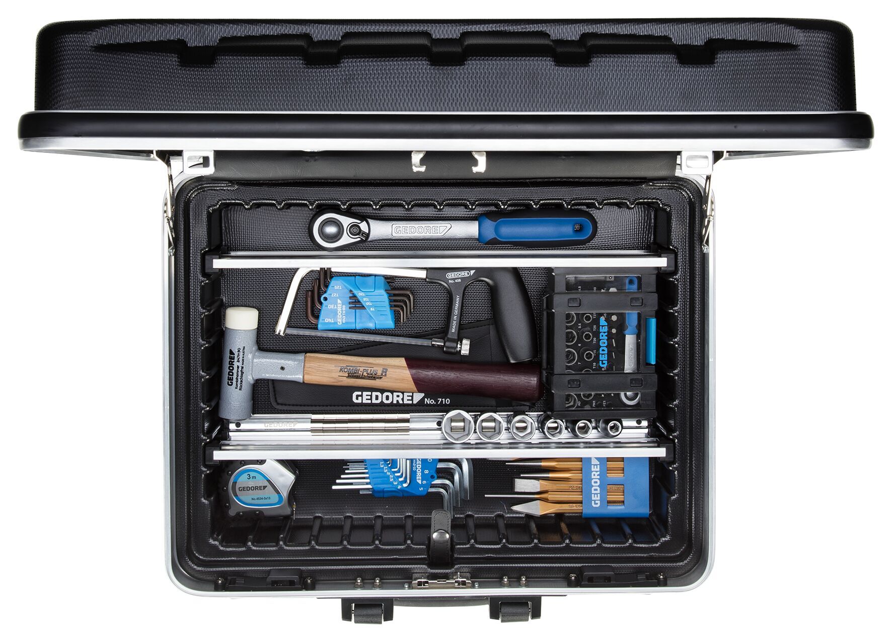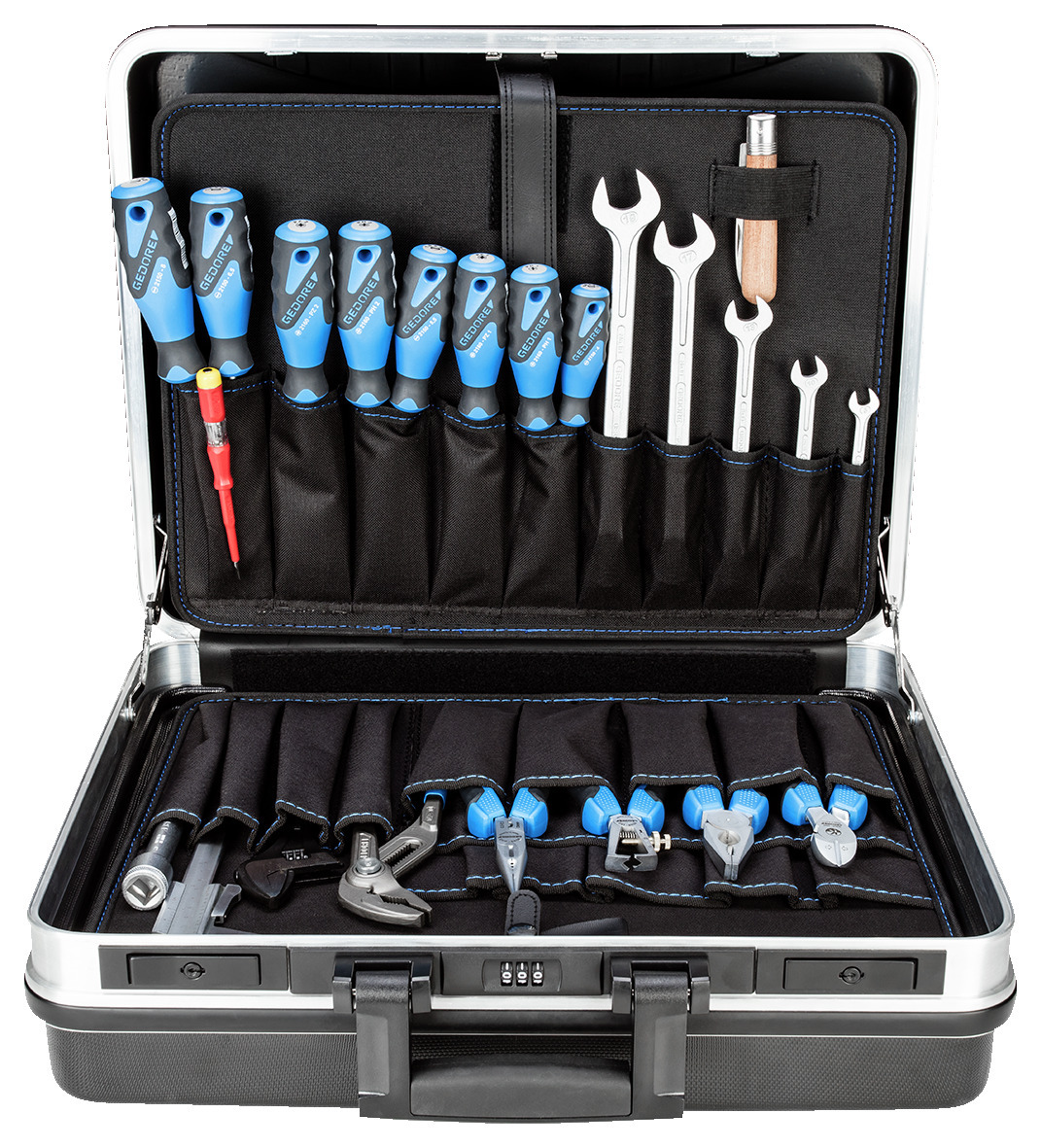 Profesionálny sortiment pre všetky odvetvia, prakticky navrhnutý na použitie na mieste, umiestnený v robustnom puzdre z tvrdého ABS plastu, odolného voči nárazom, pevný hliníkový rám, spoľahlivý spoločník - všade tam, kde musí byť správny nástroj vždy po ruke