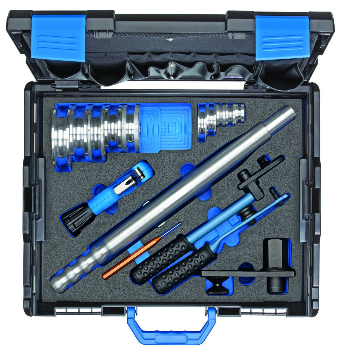 - Zoznam dielov (text): 1 základný korpus 3-10 mm č. 278570 1 ohýbacia páka 3-10 mm č. 278581 1 základný korpus 6-18 mm č. 278670 1 zasúvacia ohýbacia páka 6-18 mm č. 278680 10 hliníkových foriem ohybu pre rúry o Ø 3-4, 5, 6, 8, 10, 12, 14, 15, 16, 18 mm 1 rezač rúrok 3-35 mm Ø č. 2180 3 1 dierovač s hrotom 3 mm + GEDORE L-BOXX® 136 č. 1100 L.