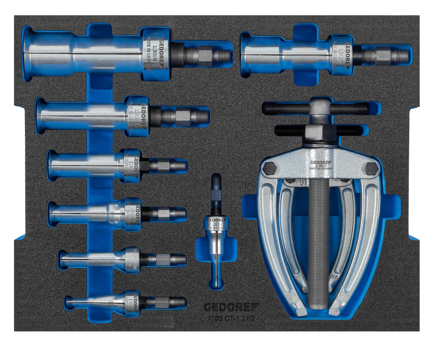 Sada vnútorných ťahákov s 8 ťahákmi a 2 podporami, L-BOXX® na mobilné a stacionárne použitie, kompatibilná so systémami MIXX & CLICK a vybavením vozidiel Sortimo, Sada je úplne umiestnená v príslušnej vložke Check-Tool, L-BOXX® z odolného voči nárazom a otrasom materiálu ABS, Vložka Check-Tool do zásuviek s minimálnymi rozmermi 400 x 310 x 90 mm, Vložka Check-Tool + nástroje (bez L-BOXX®): 1100 CT-1.31/2 (Kód: 3461785), Všetky prvky dostupné ako náhradné diely, Vyrobené v Nemecku.