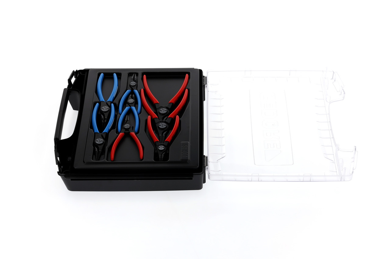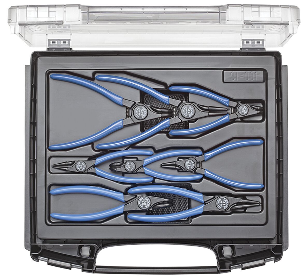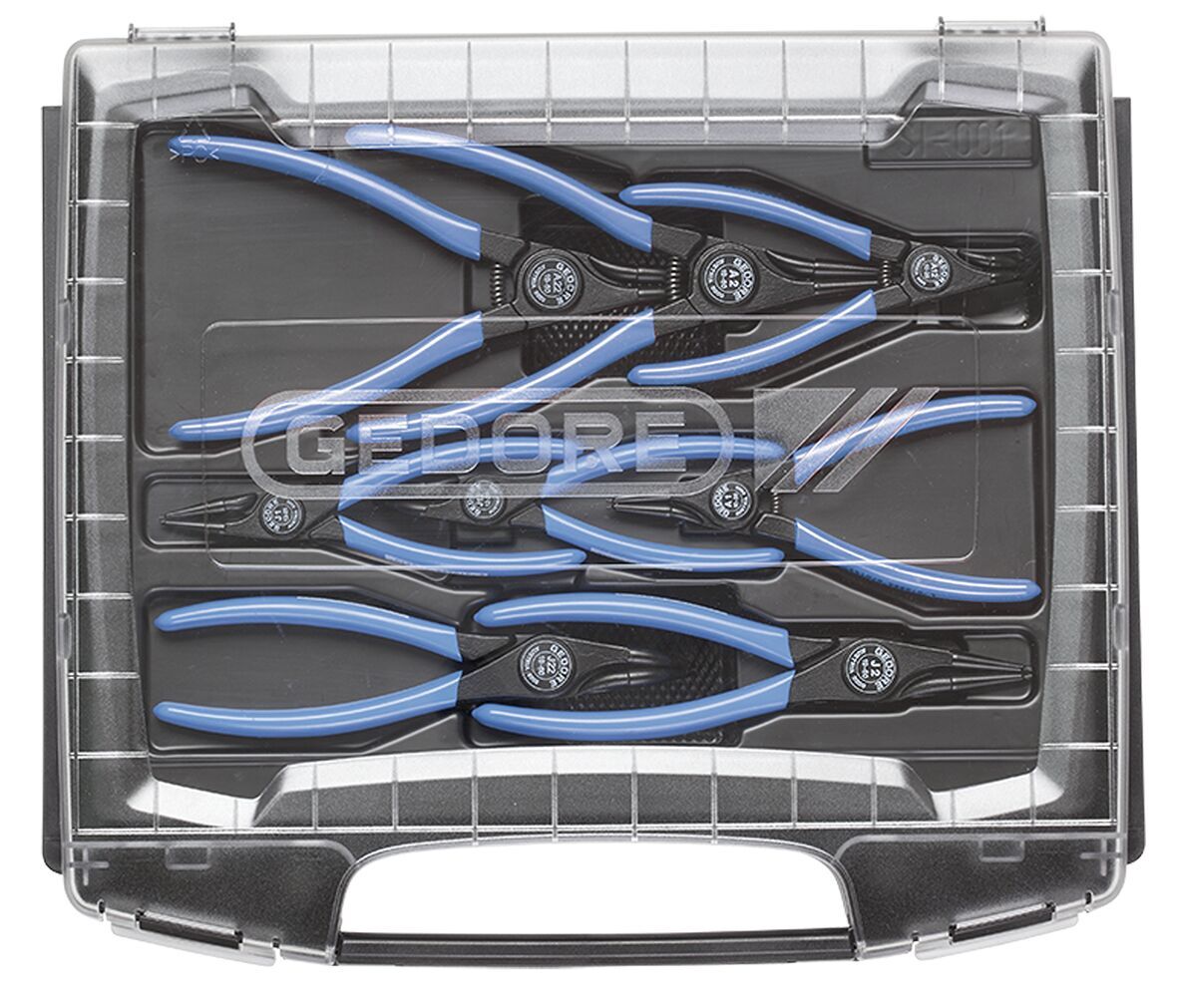 Praktická skladba viet, Zvlášť vhodná na ťažko prístupné miesta, S rovnými a ohnutými čeľusťami 45°, Na nasadzovanie a snímanie vnútorných a vonkajších zabezpečovacích krúžkov do veľkosti 60 mm, V GEDORE i-BOXX® 72, s priehľadným krytom pre rýchly prehľad, Rozmery: šír. 367 x hĺb. 316 x v. 72 mm