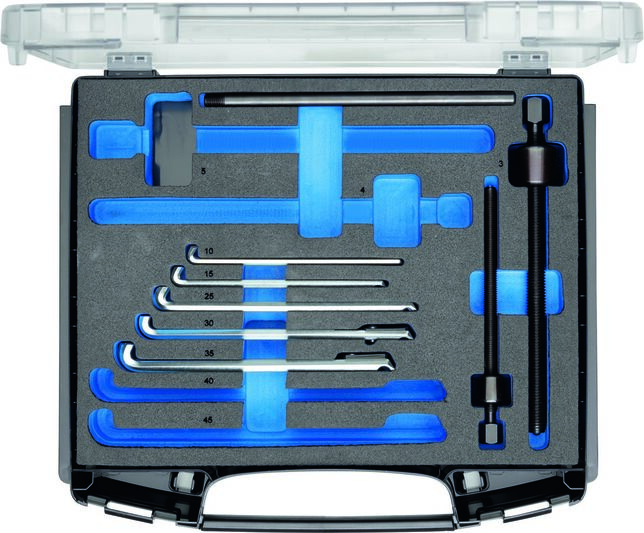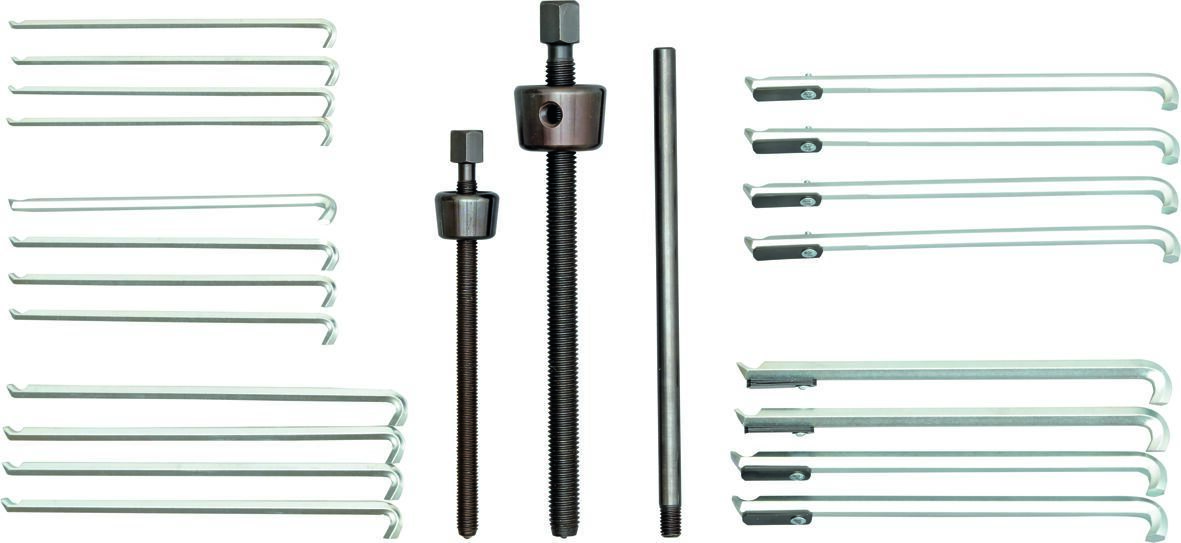 Súprava ťahákov na viac ako 30 guľkových ložísk, Na súčasné demontovanie guľkových ložísk osadených na hriadeli a v puzdre, Neničivá demontáž bežných guľkových ložísk bez demontáže hriadeľa, bez nutnosti vŕtania ložiskového koša (bez triesok), S vložkou Check-Tool na rýchle rozpoznanie chýbajúceho náradia, Vložka môže byť použitá v zásuvkách s minimálnymi rozmermi 340 x 260 x 60 mm, V GEDORE i-BOXX® 72 č. 1101 L, Rozmery: šírka 367 x hĺbka 316 x výška 72 mm