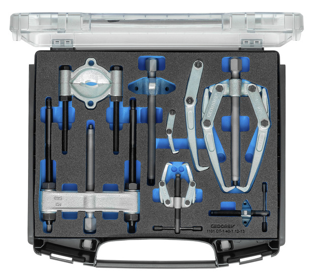 2 a 3-ramenné ťaháky oddelujúce a vonkajšie so samočinnými hákmi, Na demontáž tesne namontovaných kužeľových ložísk, guľkových ložísk, vnútorných krúžkov, svoriek akumulátora a iných tenkostenných častí do max. priemeru 70 mm a maximálnej hĺbky montáže 125 mm, Vyrobené v Nemecku, Oddelovací nôž môže byť používaný z oboch strán, ťahák je možné rozšíriť o ďalšie príslušenstvo, ako sú adaptéry 1.81/10, Flexibilné použitie vďaka komponentom 2- a 3-ramenným, S vložkou Check-Tool na rýchle rozpoznanie chýbajúceho náradia, Náradia sú úplne usadené v pene, takže naloženú vložku je možné ukladať do zásobníkov, V GEDORE i-BOXX® 72 č. 1101 L, Rozmery: šírka 367 x hĺbka 316 x výška 72 mm