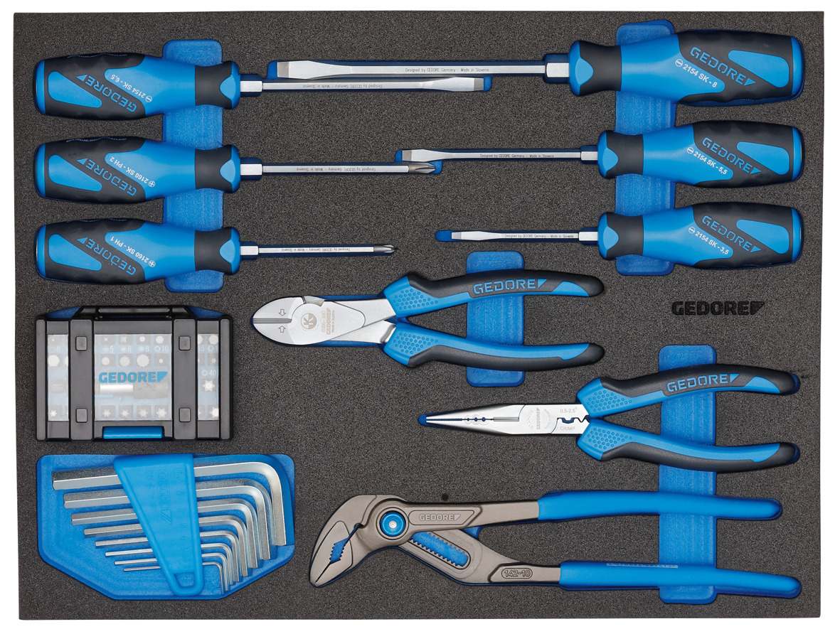 Modulárny vozík na náradie, pozostáva z: č. 1110 WM 24, 1110 WM 221, 1110 WMR 23 a 1110 WMHP 2, Mobilný ako kompletná jednotka alebo každý modul individuálne prenosný, Ideálny na prepravu z dielne do meniacich sa pracovných miest, 6 zásuviek s plným výsuvom vhodných pre moduly GEDORE 1500 ES/1500 CT, Pre 2x 1/3 modulov alebo 1x 2/3 modulov, Ľahká a stabilná zmes hliníka a plastov, Ľahká a stabilná zmes hliníka a plastov, Vodiacie lišty na kolieskach so 4 vysokokvalitnými kolesami, vrátane 2 s úplnou brzdou, Drevená pracovná doska na montážne práce na stavenisku, Kompatibilný s vybavením vozidla Sortimo® a zabezpečením nákladu, Test nárazu, Rozmery: šírka 526 x hĺbka 396 x výška 1172 mm, Hmotnostná výhoda (až 50 % ľahší ako porovnateľné riešenia!), Sortiment náradia GEDORE z každodenného života v dielni, Ideálny na veľké a malé údržbárske a montážne práce, Vhodný pre priemysel, obchod, automobilový sektor a ambicióznych kutilov