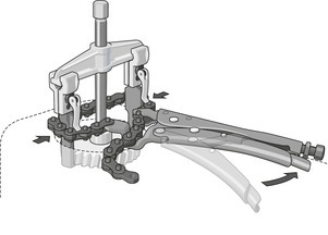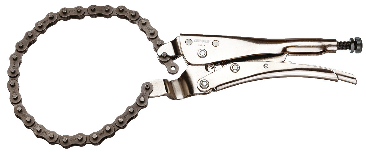 Osobitne vhodné na upevnenie geometricky náročných profilov. Pomocou č. 136 K-105 hákov rôznych ťahákov je možné rozopnúť pomocou reťaze a napnúť po zablokovaní ich na prvku, ktorý má byť ťahaný. To zabraňuje ohýbaniu hákov von a skĺzavaniu. Odťahovanie je tiež možné pri veľmi malej ploche kontaktu hákov.