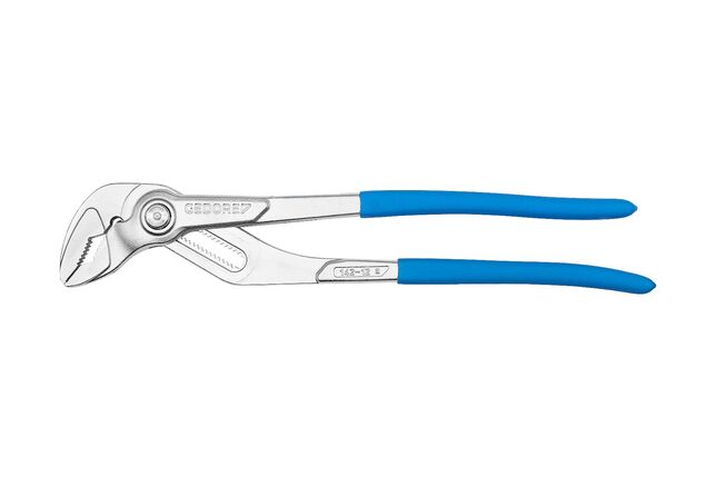 Konstrukcia podľa DIN ISO 8976 forma C, S kĺbovým puzdrom a zabezpečením upínania, Presná regulácia pomocou tlačidla, Č. 142 7 = 17-smerná regulácia, Č. 142 10 = 15-smerná regulácia, Č. 142 12 = 17-smerná regulácia, Regulácia jednou rukou pomocou tlačidla s veľkou aktívnou plochou, Štíhle čeľuste a úzke steny čeľustí robia kľúč ľahším, Dlhé čeľuste klieští, Posunuté uchopovacie plochy, samosvorné na maticiach a rúrach, GEDORE chrómovo-vanádiová špeciálna oceľ, Zuby kalené indukčne, Vyhotovenie JC = chrómované, s 2-zložkovým poťahom úchopov, Konstrukcia C = štíhle nohy úchopu s kovanými výstupkami, Vyhotovenie TL = lakovanie bezfarebným lakom, s modrými krytmi úchopu natieranými ponorením, Model TC = chrómovaný, s modrými ponorenými úchopmi