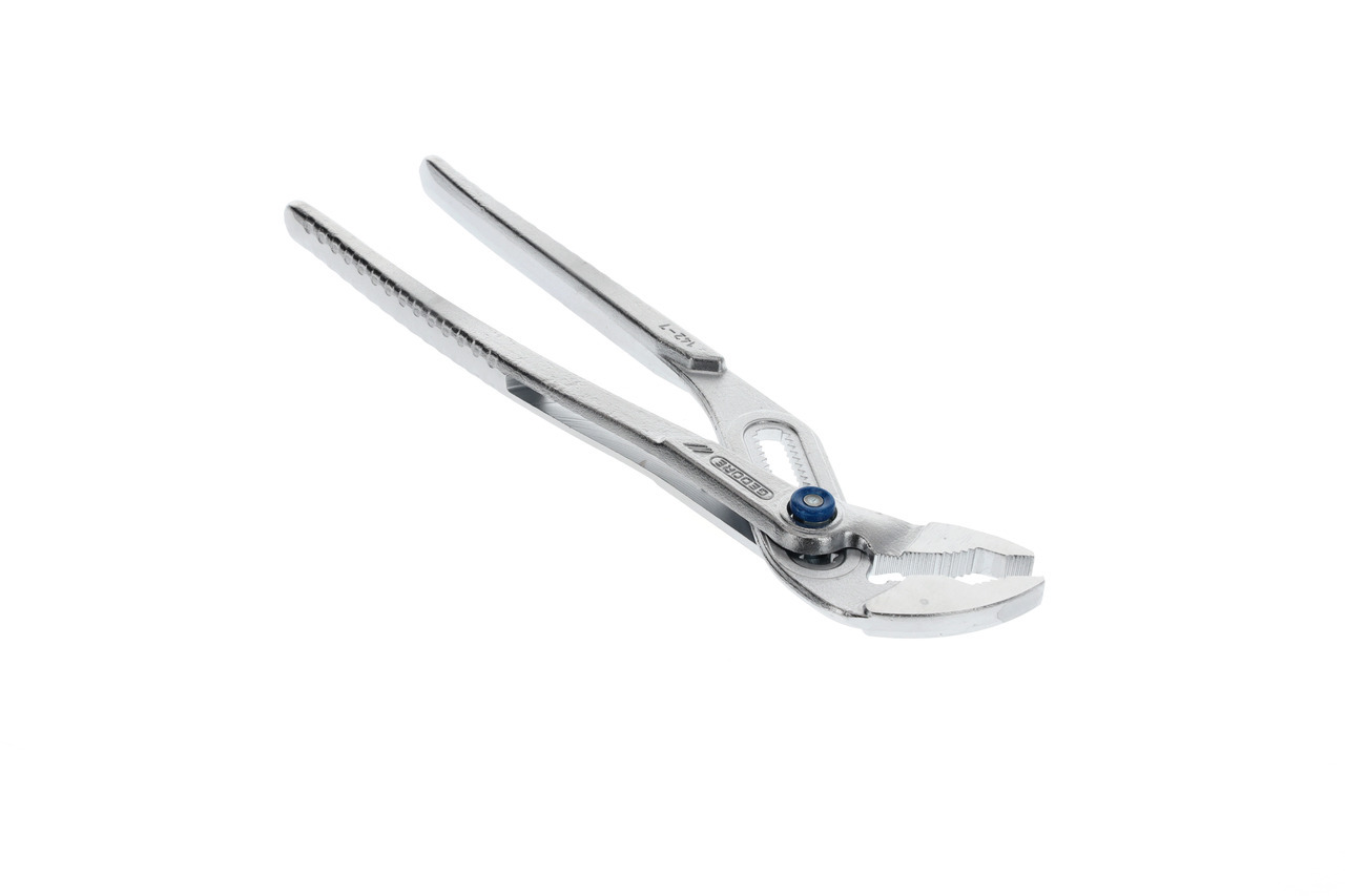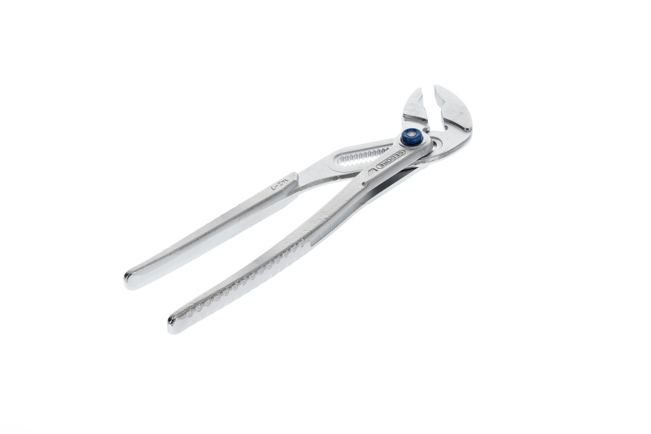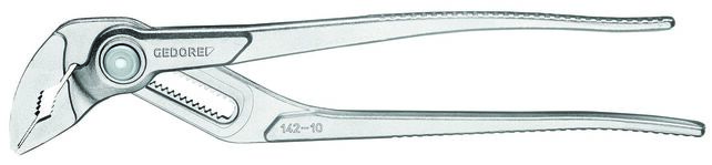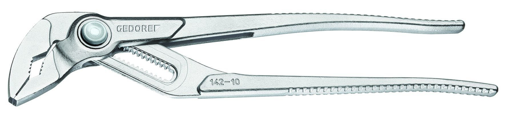 Konstrukcia podľa DIN ISO 8976 forma C, S kĺbovým spojom a zabezpečením upínania, Presná regulácia pomocou tlačidla, Č. 142 7 = 17-stupňová regulácia, Regulácia jednou rukou pomocou tlačidla s veľkou aktívnou plochou, Štíhle čeľuste a úzke steny čeľustí robia kľúč ľahším, Dlhé čeľuste klieští, Posunuté uchopovacie plochy, samočinne sa upínajúce na matice a rúry, GEDORE chrómovo-vanádiová špeciálna oceľ, Zuby kalené indukčne, Konstrukcia C = štíhle nohy držadla s kovanými výstupkami, šírka rozpätia 37 mm