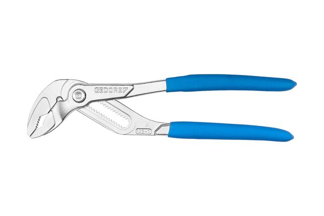 Konstrukcia podľa DIN ISO 8976 forma C, S kĺbovým spojom a zabezpečením upínania, Presná regulácia pomocou tlačidla, Č. 142 7 = 17-smerová regulácia, Č. 142 10 = 15-smerová regulácia, Č. 142 12 = 17-smerová regulácia, Regulácia jednou rukou pomocou tlačidla s veľkou aktívnou plochou, Štíhle čeľuste a úzke steny čeľustí robia kľúč ľahším, Dlhé čeľuste klieští, Posunuté uchopovacie plochy, samočinne sa upínajúce na matice a rúry, GEDORE chrómovo-vanádiová špeciálna oceľ, Zuby kalené indukčne, Vyhotovenie JC = chrómované, s 2-zložkovým obalom úchopov, Konstrukcia C = štíhle nohy úchopu s kovanými výstupkami, Vyhotovenie TL = lakovanie bezfarebným lakom, s modrými krytmi úchopu natieranými ponorením, Model TC = chrómovaný, s modrými ponorenými úchopmi