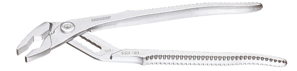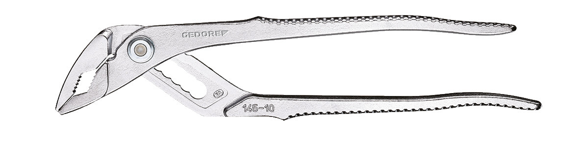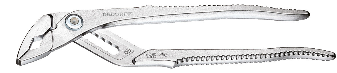 Konstrukcia podľa DIN ISO 8976 forma A, so zabudovaným kĺbom a zúbkovanou vnútornou časťou, Zuby kalené indukčne, so zaisťovacím mechanizmom, Samozacvakávanie na rúrach a maticiach, GEDORE špeciálna chrómovo-vanádiová oceľ, chrómovaná, Verzia C = Rukoväte s mriežkovaním, Model TC = chrómovaný, s modrými ponorenými rukoväťami, šírka rozpätia 39 mm