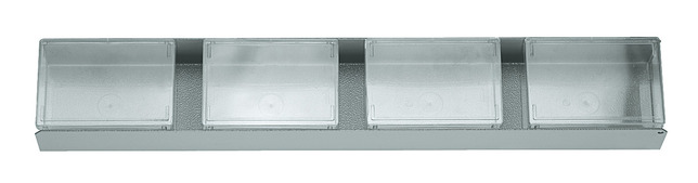 Na vyváženie a upevnenie modulov nástrojov č. 1500 ES v zásuvkách s veľkou kapacitou Šírka 480 x Dĺžka 400 mm pre vozík s náradím č. 2004 a pracovné stoly č. 1502, 1504, 1505 a 1506 XL, Modul z oceľového plechu so 4 praktickými priehľadnými nádobami na drobné súčiastky, s ľahko odnímateľným krytom, verzia L bez nádob, Rozmery: šírka 475 x hĺbka 77 x výška 40 mm