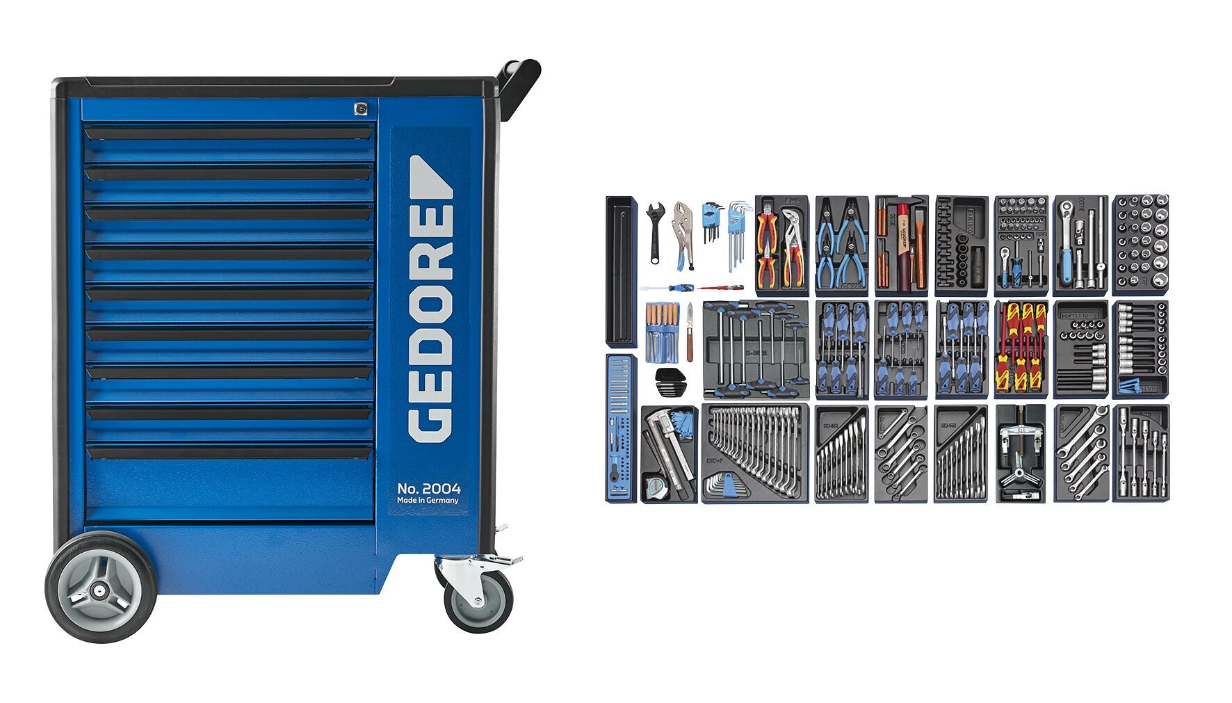 Široký priemyselný sortiment pre profesionálov, Náradie s metrickými rozmermi, Overené modulové náradia GEDORE z ABS, V náradí vozíku č. 2004 0810