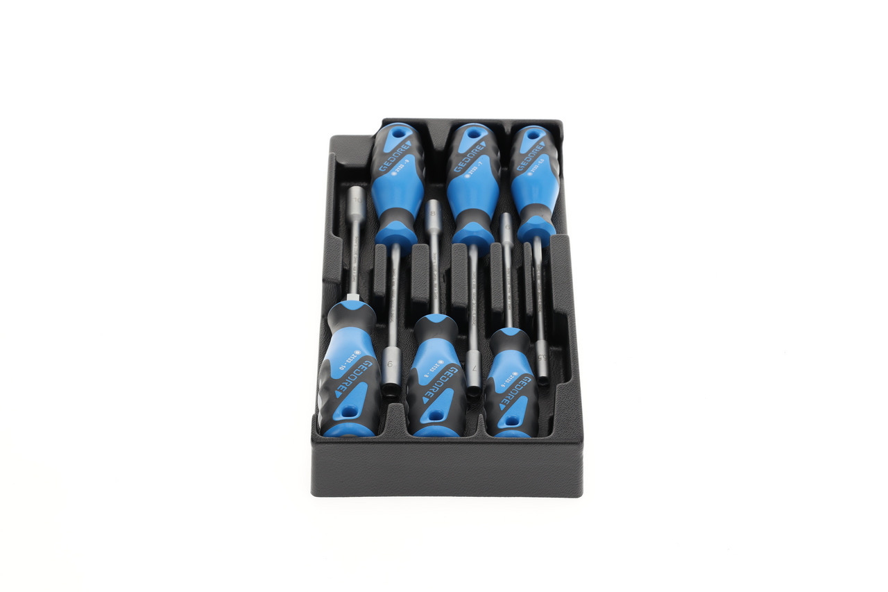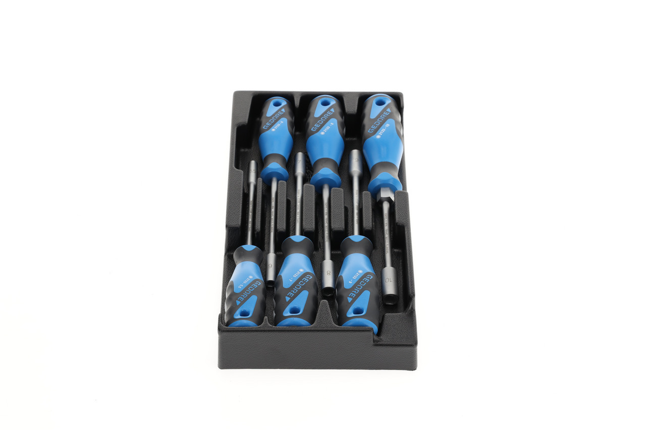 Dodávaný v 1500 moduloch ES, vyrobený z odolného voči nárazom materiálu ABS, čierno-štruktúrovaný, odolný voči pôsobeniu olejov a kyselín, každé náradie leží protišmykovo vo vlastnom výreze, ľahko vyberateľné vďaka zapusteným úchytom.