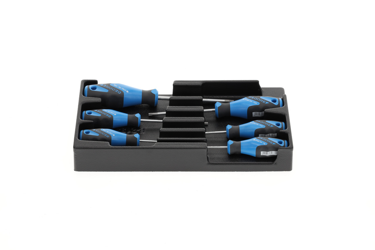 Dodávaný v 1500 moduloch ES, vyrobený z odolného voči nárazom plastu ABS, čierno-štruktúrovaný, odolný voči olejom a kyselinám, každé náradie leží protišmykovo vo vlastnom výreze, ľahko vyberateľné vďaka zapusteným úchytom.