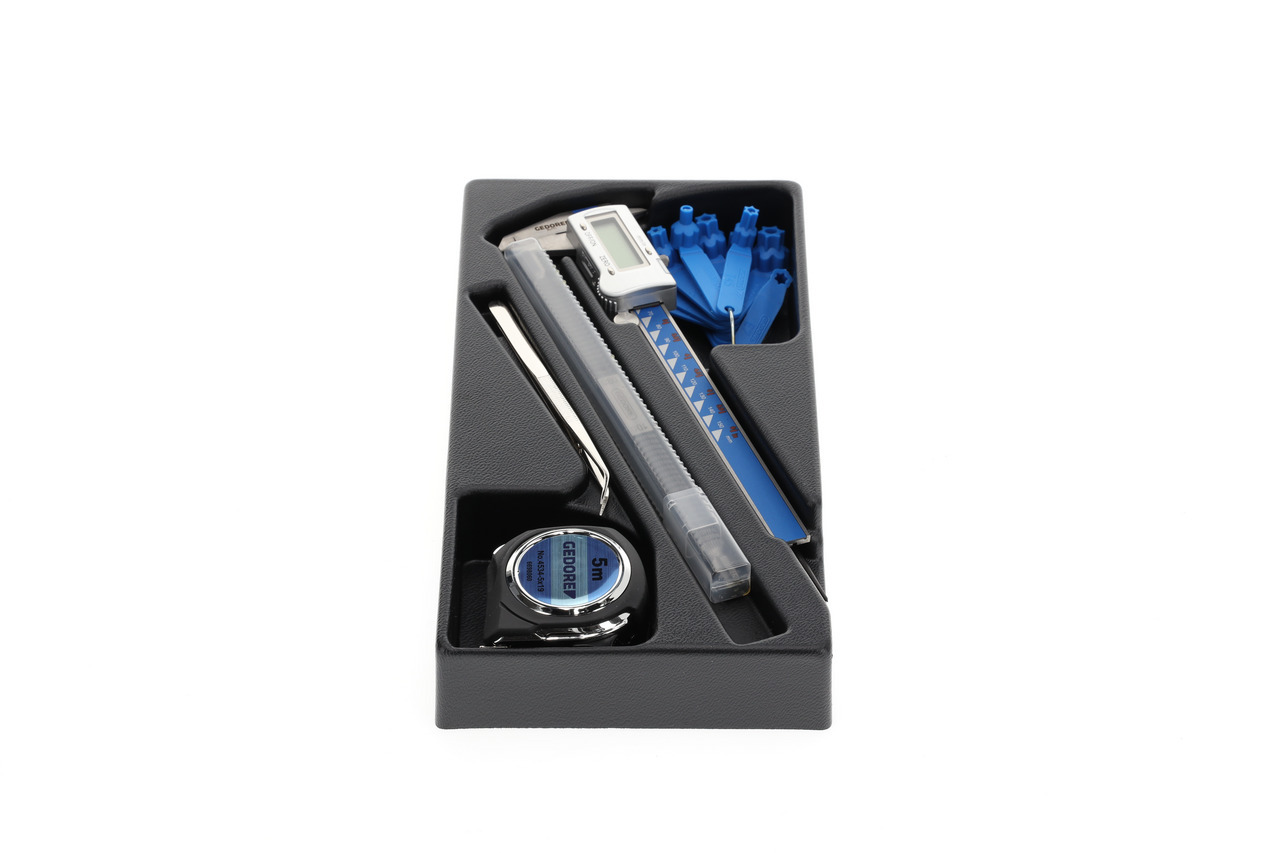 Dodávaný v 1500 moduloch ES, vyrobený z odolného voči nárazom plastu ABS, čierno-zrnistý, odolný voči pôsobeniu olejov a kyselín, každé náradie leží protišmykovo vo vlastnom výreze, ľahko vyberateľné vďaka zapusteným úchytom.