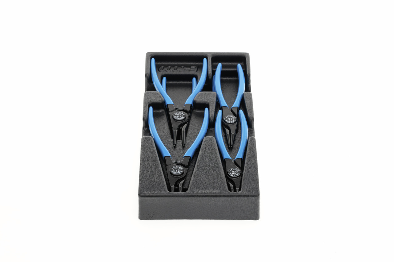 Dodávaný v 1500 moduloch ES, vyrobený z odolného voči nárazom materiálu ABS, čierno-štruktúrovaný, odolný voči pôsobeniu olejov a kyselín, každé náradie leží protišmykovo vo vlastnom výreze, ľahko vyberateľné vďaka zapusteným úchytom.