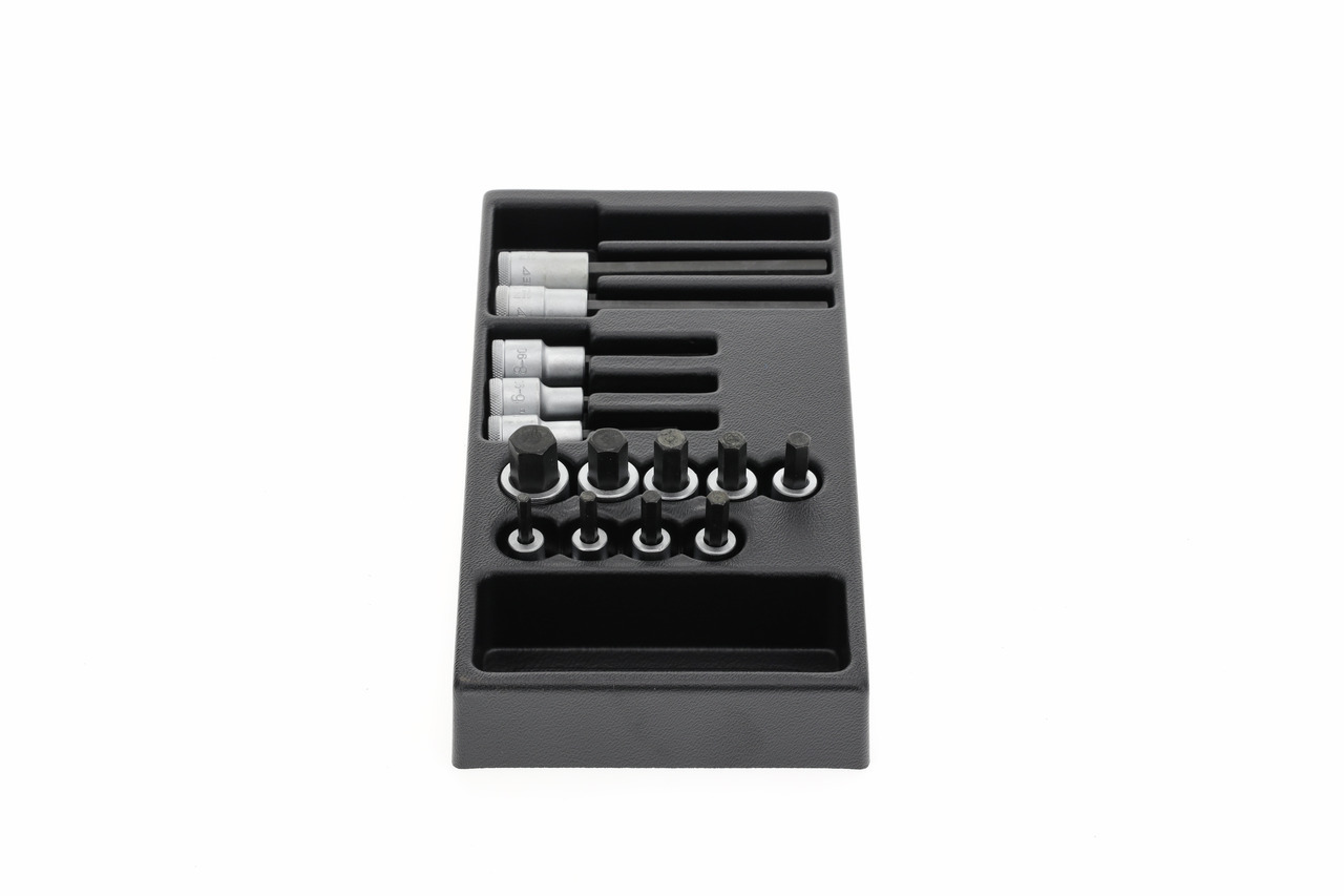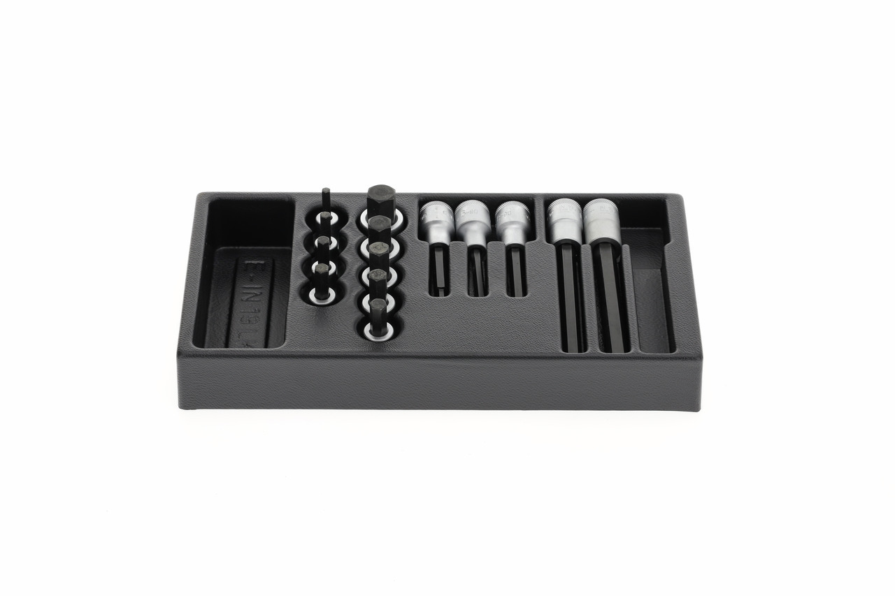 Dodávaný v 1500 moduloch ES, vyrobený z odolného voči nárazom plastu ABS, čierno-štruktúrovaný, odolný voči pôsobeniu olejov a kyselín, každé náradie leží protišmykovo vo vlastnom výreze, ľahko vyberateľné vďaka zapusteným úchytom.