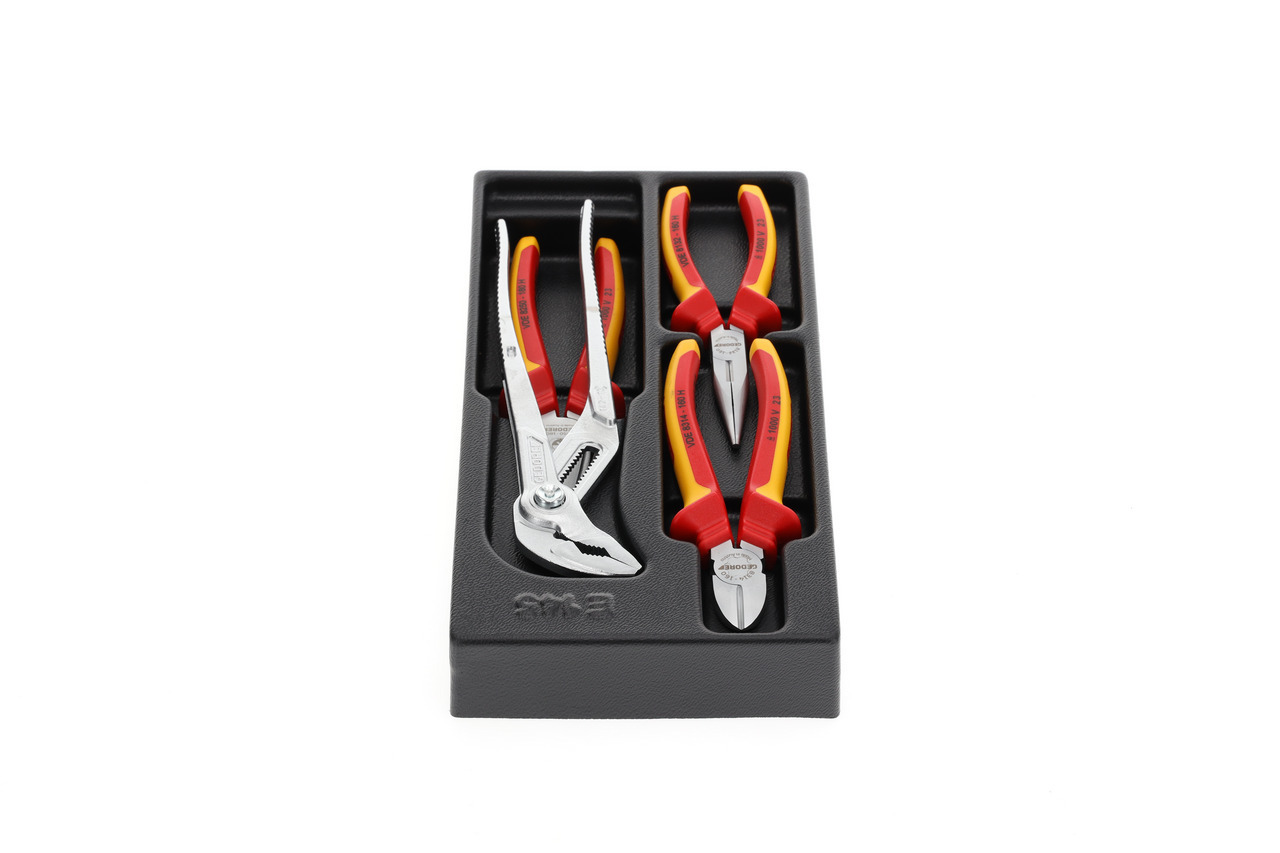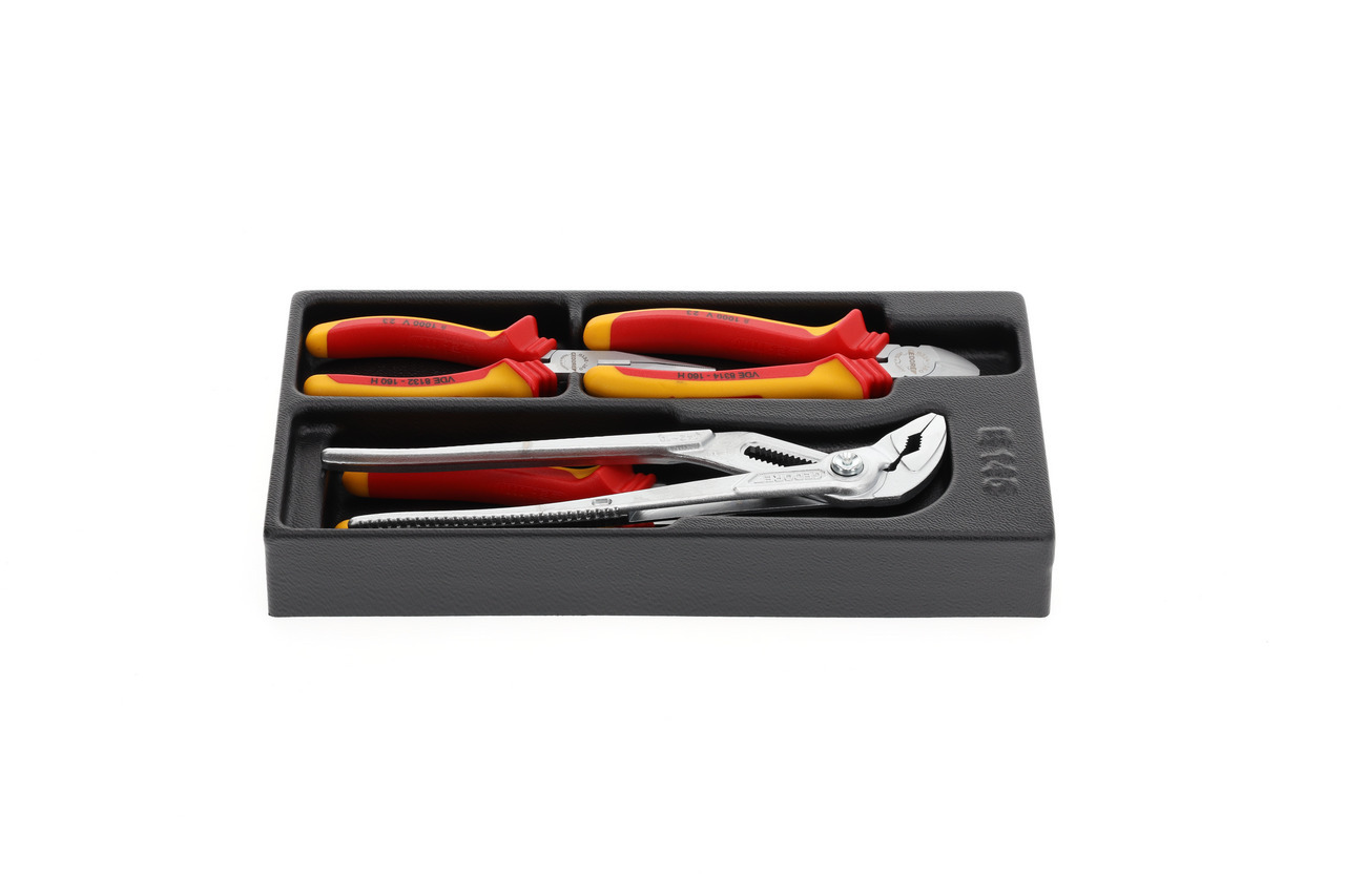 Dodávaný v 1500 moduloch ES, vyrobený z odolného voči nárazom materiálu ABS, čierno-štruktúrovaný, odolný voči pôsobeniu olejov a kyselín, každé náradie leží protišmykovo vo vlastnom výreze, ľahko vyberateľné vďaka zapusteným úchytom.