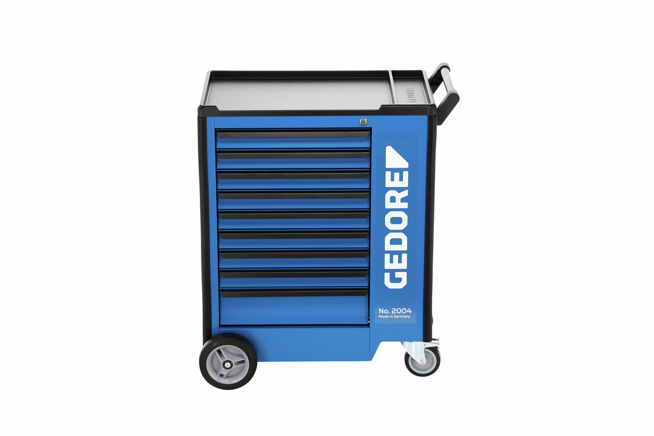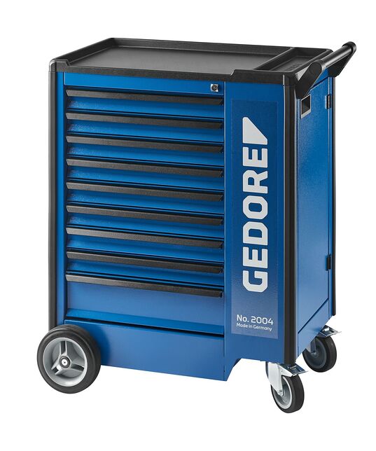 Korpus: Rozmery: výška 985 x šírka 775 x hĺbka 475 mm, Kryt z plastu ABS s 3 nádobami na drobné prvky, vybranie na 2 plechovky a otvory na 8 skrutkovačov, Úložný priestor s obložením z perforovanej ocele (Euro perforácia 10 x 38 mm) a 2 vyberateľnými zásuvkami na drobné súčiastky a dvierkami na strane držadla, Otočný a ľahko ovládateľný vďaka držadlu na jazdu a riadenie, Predná plocha s otvorom Euro 10 x 38 mm na upevnenie hákov a nástrojov, Bezpečnosť prostredníctvom ochrany nôh a protiúderových hrán pre osoby a okolie, Oceľový plech, odolný voči korózii a poškriabaniu, práškovo lakovaný, GEDORE modrý, Zásuvky: Centrálna zámková blokácia s cylindrickým zámkom, Široké zásuvky (šírka 480 x hĺbka 400 mm) s plným výsuvom, vyberateľné, Bezpečnostná blokácia v zásuvke a úložnom priestore, obsluha jednou rukou, Vodiacie koľajnice na guľkových ložiskách, Individuálne vybavenie s pozdĺžnymi a priečnymi priečkami (dodávané aj jednotlivo), Nosnosť každej zásuvky 40 kg, dolná zásuvka s vyššou odolnosťou 60 kg (nie s č. 2004 1000), Oceľový plech, odolný voči korózii a poškriabaniu, práškovo lakovaný, GEDORE modrý, Vysoko odolné zavesenie GEDORE: Celková statická nosnosť 1000 kg (750 kg dynamická), 2 kolesá s vysokou účinnosťou s valčekovými ložiskami GEDORE (pevné kolieska Ø 200 mm), 2 ľahko pohyblivé kolesá s guľkovými ložiskami GEDORE (otočné kolieska Ø 125 mm), obe s plnou blokáciou, Konštrukcia osi GEDORE funguje aj pri maximálnom zaťažení: ľahkosť pohybu, obratnosť a istota vedenia po nerovnostiach, Vybavenie: Pozdĺžne (PW) a priečne (PP) priečky z pozinkovanej ocele (možno objednať aj samostatne), Možnosti: Môže byť optimálne vybavený nástrojovými modulmi GEDORE (č. 1500 ES/1500 CT), Ľubovoľne rozšíriteľný pomocou nasadzovacích boxov na nástroje, zadných stien a nástrojových skriniek GEDORE, Ďalšie varianty zásuviek na požiadanie, Špeciálne farby a verzie na dopyt, Dodávka bez zobrazených nástrojov a príslušenstva
