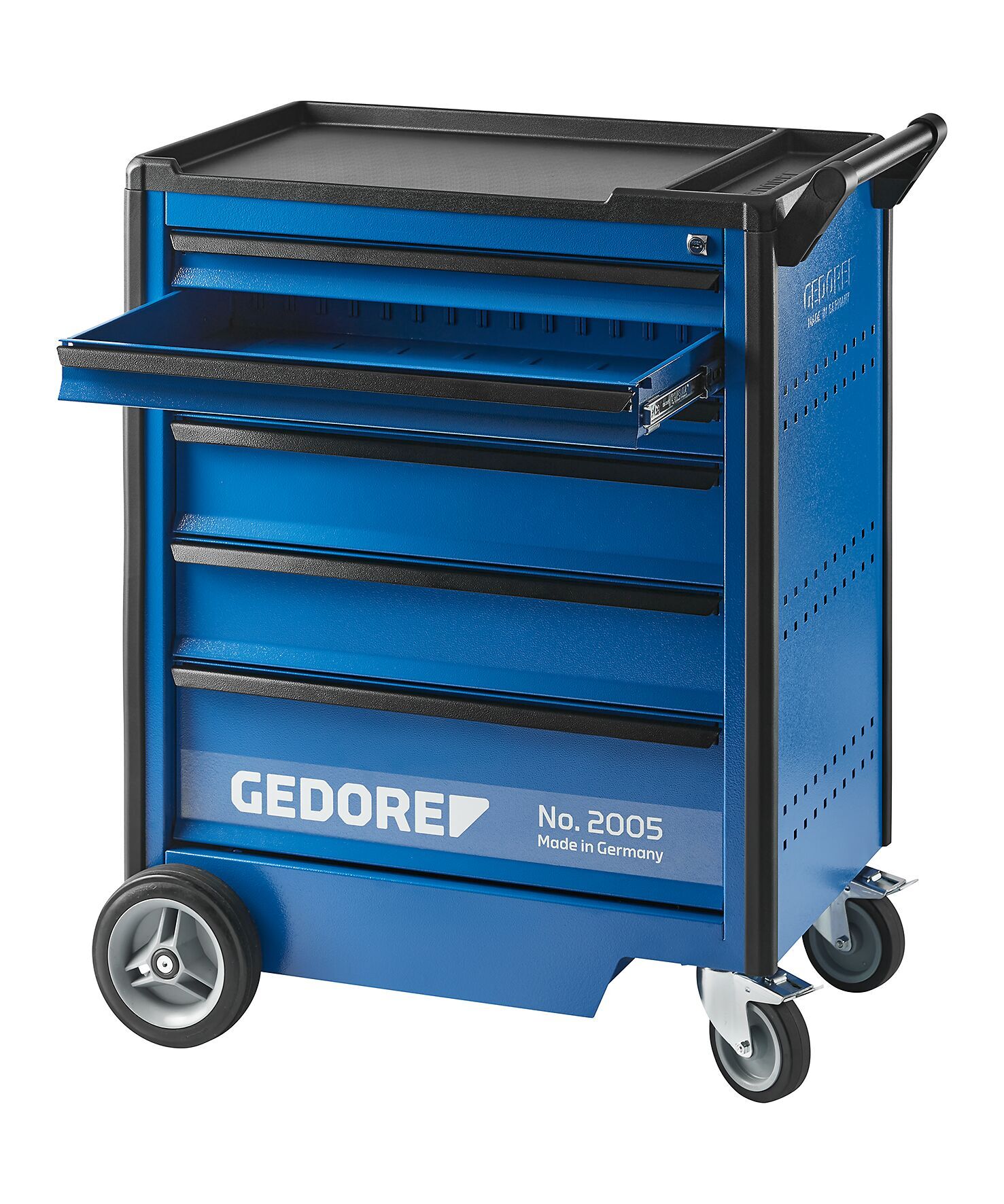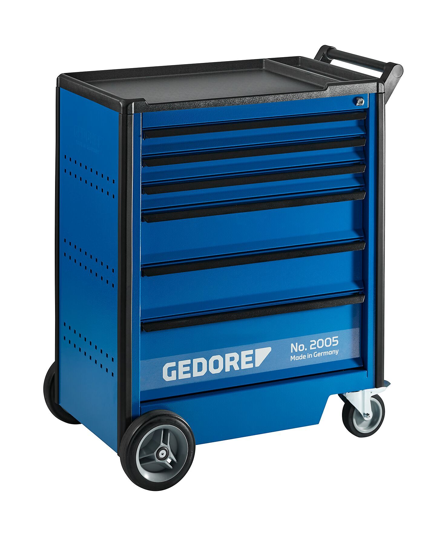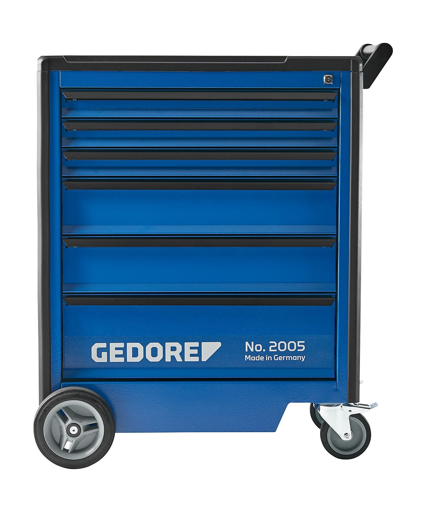 Korpus: Rozmery: výška 985 x šírka 775 x hĺbka 475 mm, Kryt z plastu ABS s 3 nádobami na drobné prvky, vybranie na 2 plechovky a otvory na 8 skrutkovačov, Otočný a ľahko ovládateľný vďaka držadlu na jazdu a riadenie, Bočné steny s euro otváraním 10 x 38 mm na upevnenie hákov a nástrojov, Bezpečnosť prostredníctvom ochrany nôh a protiúderových hrán pre osoby a okolie, Oceľový plech, odolný voči korózii a poškriabaniu, práškovo lakovaný, GEDORE modrý, Zásuvky: Centrálna zámková blokácia s cylindrickým zámkom, Široké zásuvky (šírka 640 x hĺbka 400 mm), plne vysúvateľné, vyberateľné, Zabezpečovacia blokácia v každej zásuvke, obsluha jednou rukou, Koľajnice na guľkových ložiskách, Individuálne vybavenie s priečkami pozdĺžnymi a priečnymi (dodávané aj samostatne), Nosnosť na zásuvku: 40 kg, dolná zásuvka s vysokou nosnosťou: 60 kg, Oceľový plech, odolný voči korózii a poškriabaniu, práškovo lakovaný, GEDORE modrý, Vysoko odolné zavesenie GEDORE: Celková statická nosnosť 1000 kg (750 kg dynamická), 2 kolesá s vysokou účinnosťou s GEDORE valčekovými ložiskami (pevné kolieska Ø 200 mm), 2 ľahko pohyblivé kolesá s GEDORE guľkovými ložiskami (otočné kolieska Ø 125 mm), obe s plnou blokáciou, Konštrukcia osi GEDORE funguje aj pri maximálnom zaťažení: ľahkosť pohybu, obratnosť a istota vedenia po nerovnostiach, Vybavenie: Priečky pozdĺžne (PW) a priečne (PP) z pozinkovaného oceľového plechu (na objednávku aj samostatne), Možnosti: Optimálne vybavenie modulmi nástrojov GEDORE (č. 1500 ES/1500 CT alebo 2005 CT), Ľubovoľne rozšíriteľné pomocou nasadzovacích boxov na nástroje, zadných stien a nástrojových skriniek GEDORE, Ďalšie varianty zásuviek na požiadanie, Špeciálne farby a verzie na požiadanie, Dodávka bez zobrazených nástrojov a príslušenstva