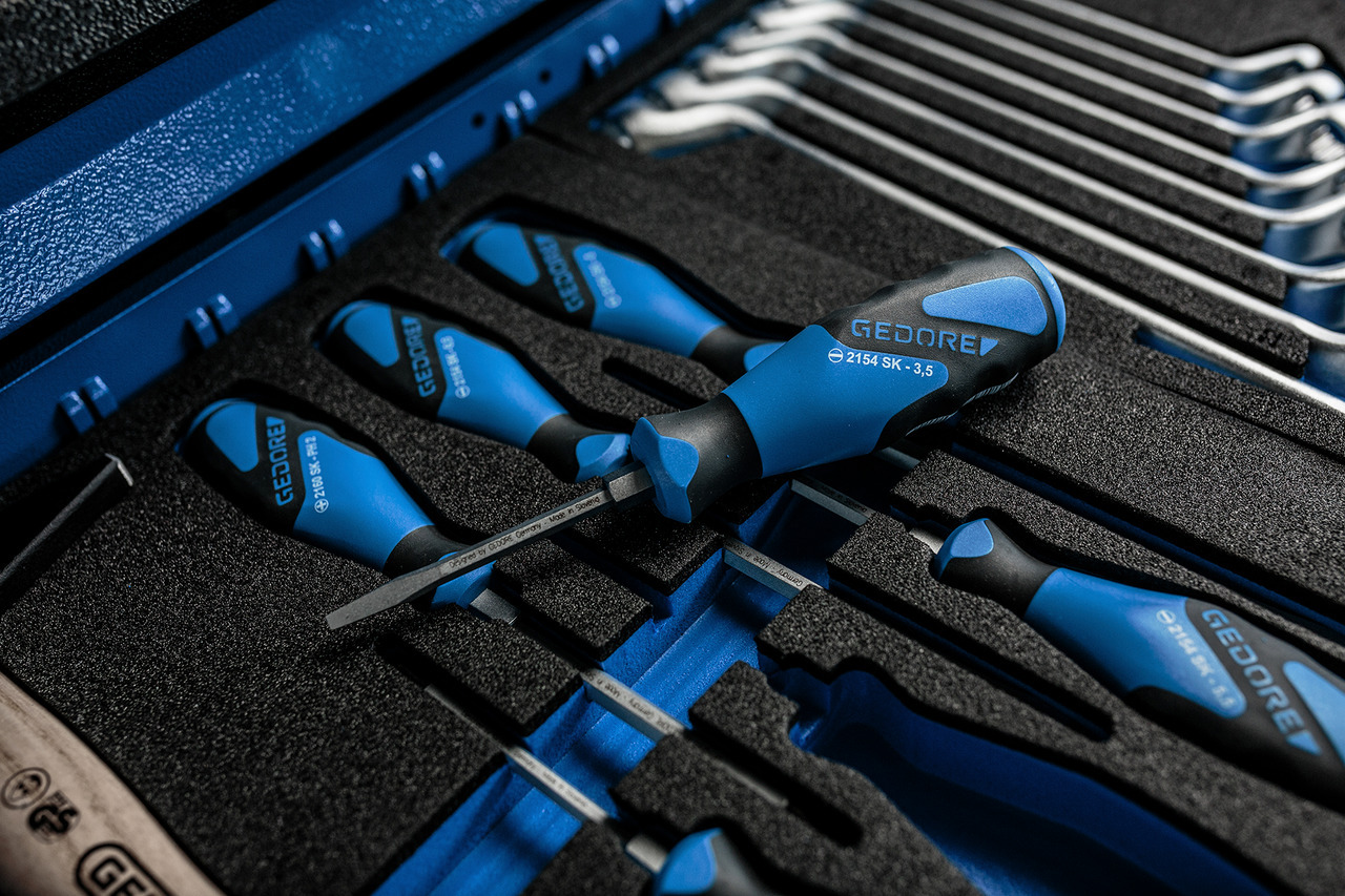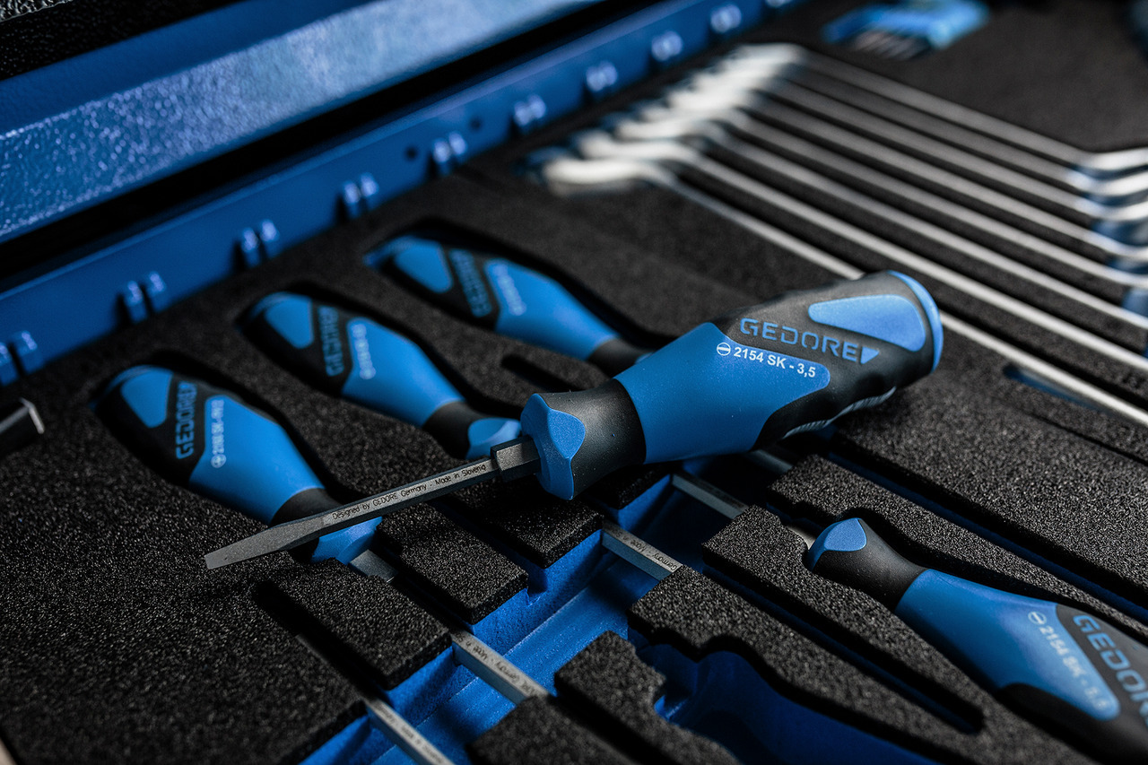 Konstrukcia podľa DIN ISO 2380-2, rezná hrana podľa DIN ISO 2380-1 forma A, 3-komponentná rukoväť Power-Grip³ s úderovou čiapkou, Ergonomický tvar rukoväte pre presnú a neúnavnú prácu, Zharmonizované spojenie rukoväte s čepeľou pre optimálny prenos sily, S dodatočnou 6-hrannou koncovkou pohonu na šesťhrannej čepeli, Čepeľ z molybdénovo-vanádiovej ocele, kalená