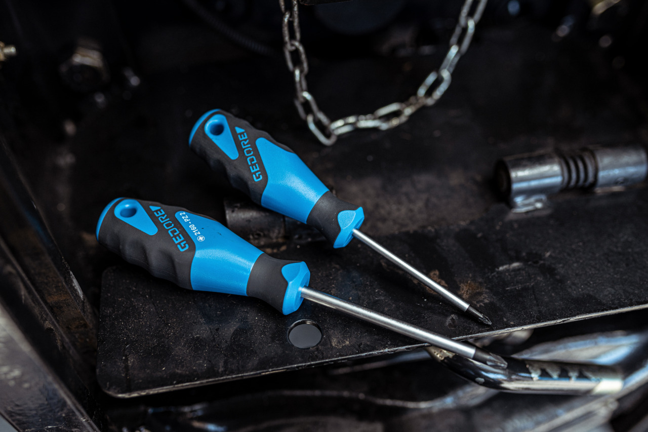 Konstrukcia podľa DIN ISO 8764, koncovka podľa DIN ISO 8764-1 PZ, 3-komponentná rukoväť Power-Grip³ s otvorom na zavesenie, ergonomický tvar rukoväte pre presnú a neúnavnú prácu, harmonizované spojenie rukoväte s čepeľou pre optimálny prenos sily, označenie tvaru pohonu na konci rukoväte, veľkosti 3 a 4 s hexagonálnym pohonom na čepeli, čepeľ z molybdénu a vanádu - kalenej a popúšťanej ocele