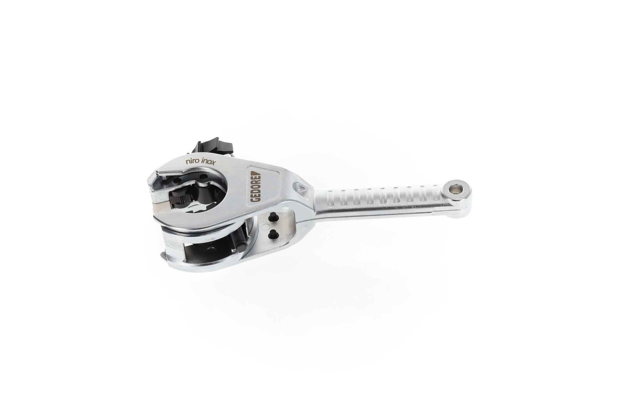 Malé požiadavky na priestor, preto je obzvlášť vhodný na prácu pri výfukových systémoch vozidiel, Telo vyrobené z pozinkovanej hliníkovej zliatiny, Jednoduchá obsluha vďaka automatickému podávaniu rezných kotúčov pri každom otočení, Rezné kotúče s vysokou tvrdosťou, potiahnuté, s obzvlášť dlhou životnosťou, Dodatočný náhradný kruhový nôž