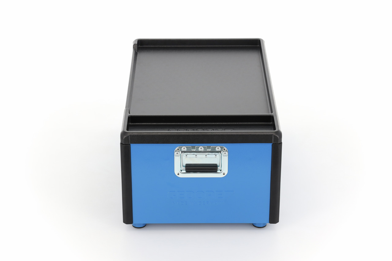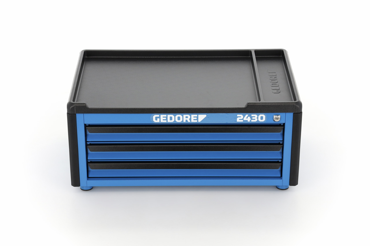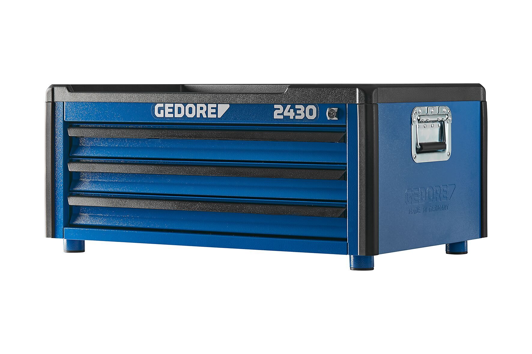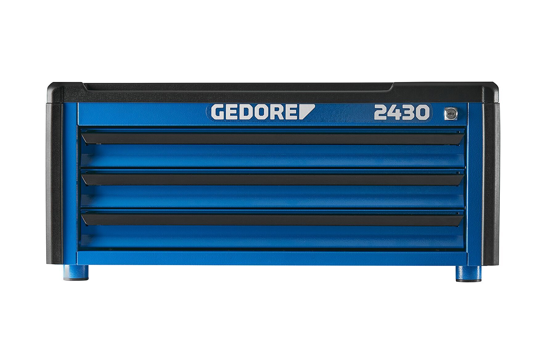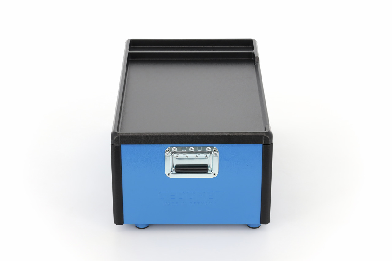 Oceľový plech, odolný voči korózii a poškriabaniu, práškovaná farba, GEDORE modrá, Korpus: Rozmery: výška 345 x šírka 775 x hĺbka 475 mm, Polica vyrobená z ABS plastu s 3 priehradkami na drobné súčiastky, Zásuvky: Centrálna zámka s cylindrickým zámkom, Široké zásuvky (šírka 640 x hĺbka 400 x výška 67 mm) s plným výsuvom, vyberateľné, Zabezpečovacia zámka v každej zásuvke, obsluha jednou rukou, Koľajnice na guľkových ložiskách, Individuálne vybavenie priehradkami pozdĺžnymi a priečnymi (dodávané aj jednotlivo), Nosnosť každej zásuvky 40 kg, použitie: Obzvlášť vhodné na upevnenie na vozíkoch náradia 2004, 2005 s hĺbkou 475 mm od roku 4/2014, Vybavenie: Priehradky pozdĺžne (LT) a priečne (QT) z pozinkovaného oceľového plechu, Možnosti: Optimálne vybavenie modulmi náradia GEDORE (č. 1500 ES/1500 CT alebo 2005 CT), Zabezpečenie výsuvu zásuvky na požiadanie