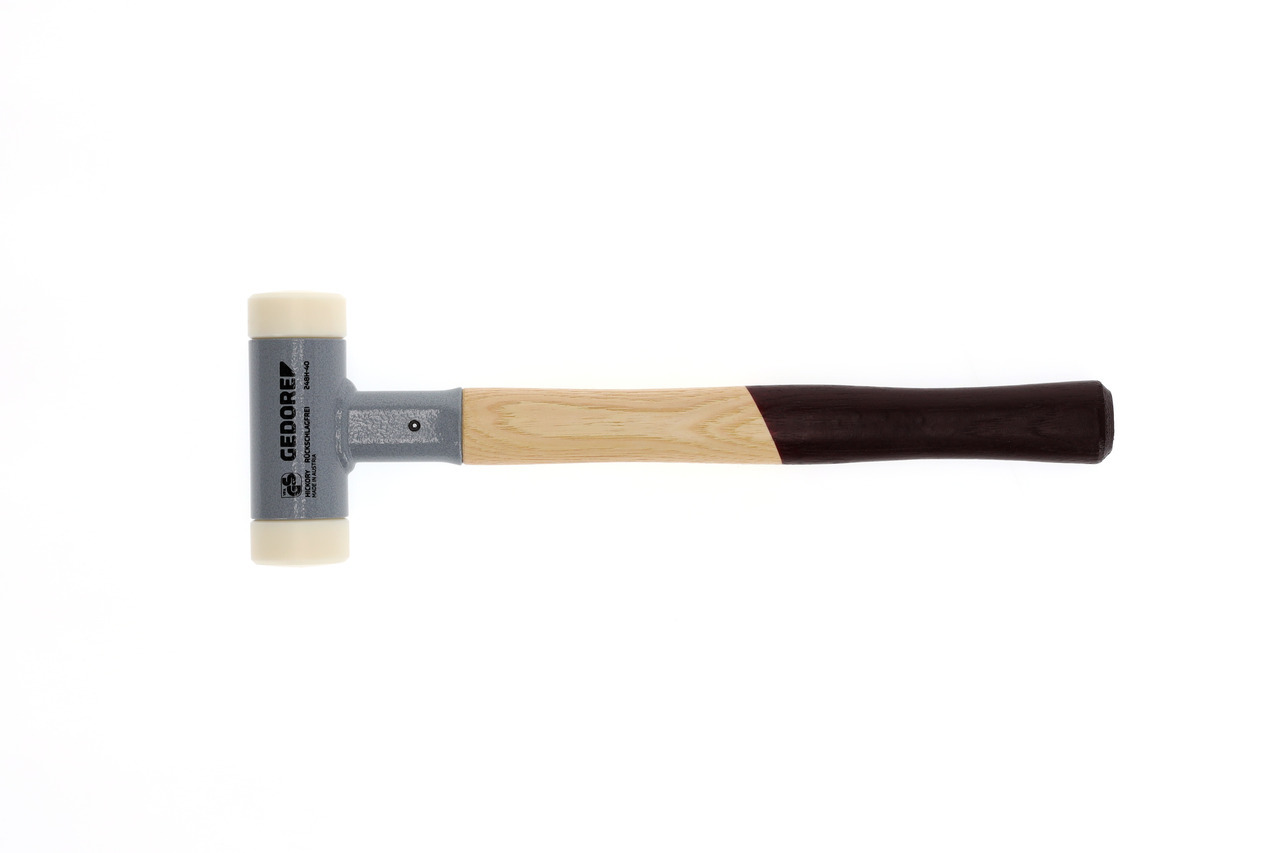 So hikorovou rukoväťou, bezodpryskovo, ťažko lámateľné a ťažko opotrebovateľné polyamidové hlavy, 75 Shore D, testované do -20° C, strieborné kladivkové práškové lakovanie