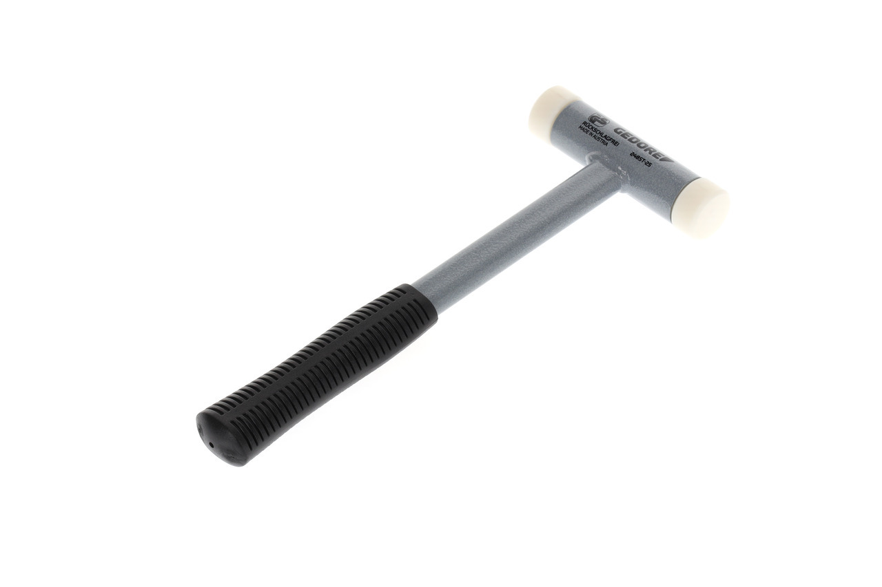 S nadmierne stabilným a odolným držadlom z oceľovej rúry, bezodpryskovo, ťažko lámavé a ťažko opotrebovateľné polyamidové hlavy, 75 Shore D, testované do -20° C, strieborné kladivové práškové lakovanie