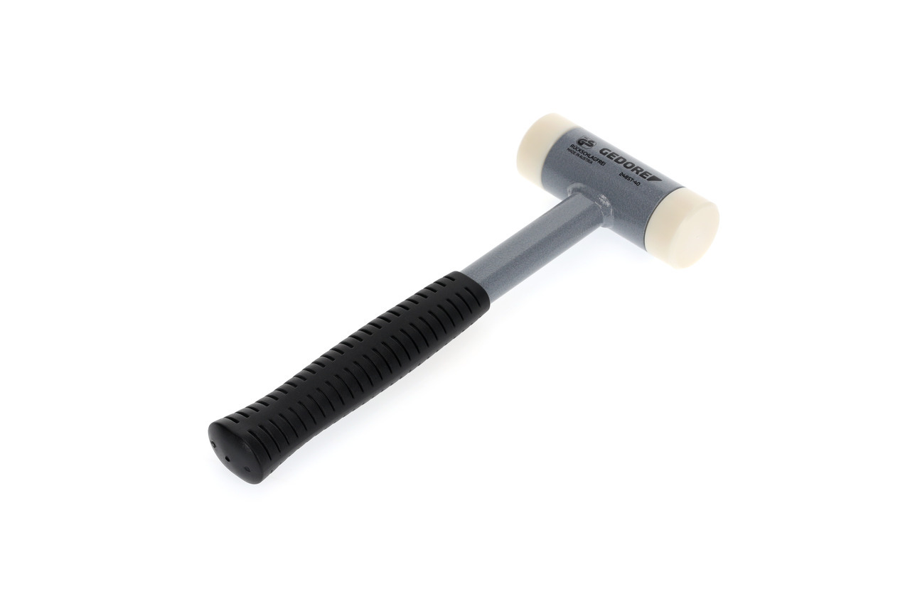 So mimoriadne stabilnou a odolnou rukoväťou z oceľovej rúry, bezodpryskovo, ťažko lámateľné a ťažko opotrebovateľné polyamidové hlavy, 75 Shore D, testované do -20° C, strieborné kladivkové práškové lakovanie