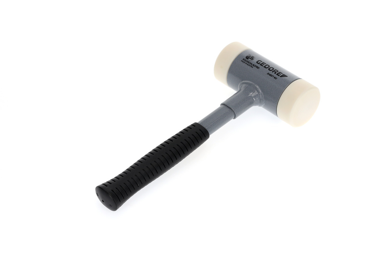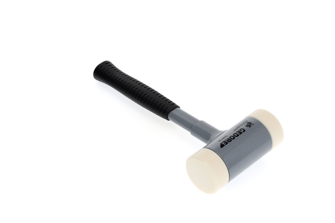 S nadmierne stabilným a odolným držadlom z oceľovej rúry, Bezodpryskove, ťažko lámavé a ťažko opotrebovateľné polyamidové hlavy, 75 Shore D, testované do -20° C, Strieborné kladivkové práškové lakovanie