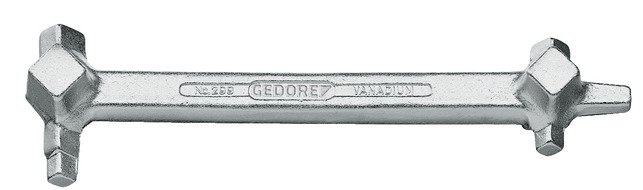 Do uzáverov misiek a olejových sudov s 9 spoločnými štvorcami, oceľ vanádiová 31CrV3, chrómovaná, 5 šírok štvorcových kľúčov: 8,7 - 9,5 - 10,5 - 11,5 - 13 mm, 4 kužeľové štvorce: 6,8-8,7 - 10,5-13 - 15,2-18 - 16,5-19 mm, 1 skrutkovačová čepeľ 5,5 x 18 mm