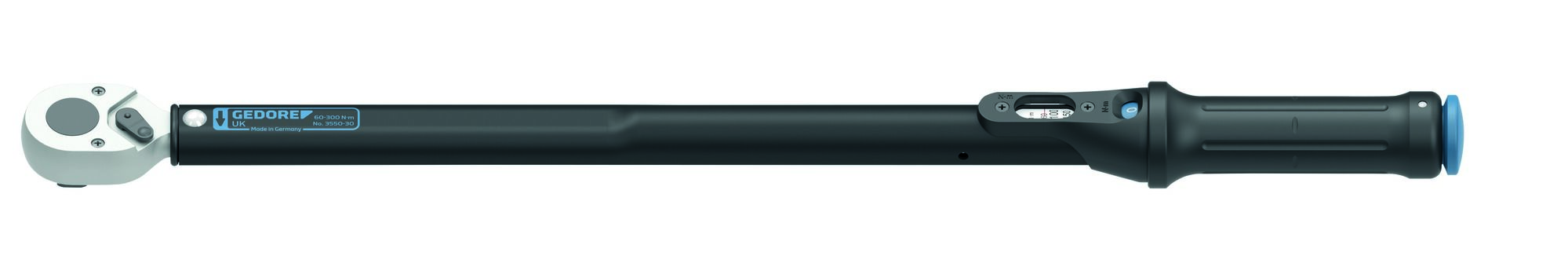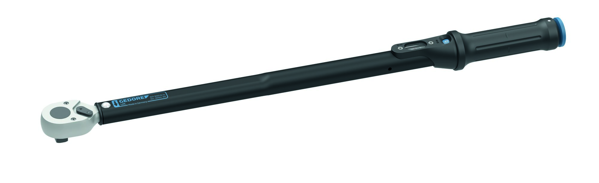Nastaviteľný, uvoľňujúci a silný rúrkový dynamometrický kľúč s integrovanou obojstrannou ráčnou (s 3/4-palcovou prepínacou doskou), s štvorkolíkovým pohonom pre priemysel a domácich majstrov, klasifikovaný podľa normy DIN EN 6789-2:2017 typ II trieda A, vrátane certifikátu kontroly s možnosťou sledovania, kalibrovaný s maximálnym prípustným odchýlením +/- 3 %, a tým pádom presnejší ako +/- 4 % požadované normou, s certifikátom skúšky podľa NORMY DIN EN ISO 6789-2:2017, na kontrolované dotiahnutie vpravo