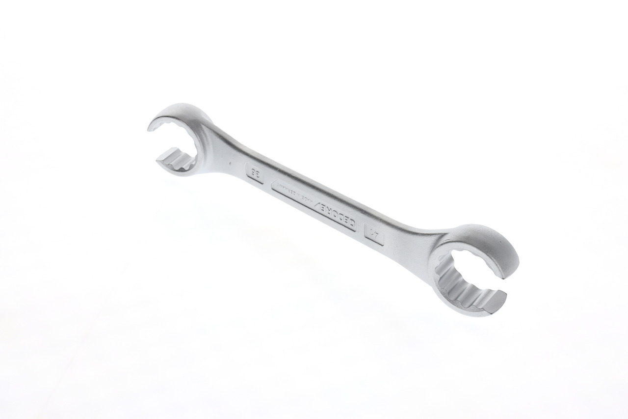 Konstrukcia podľa DIN 3118, Rozmery 8x10 do 12x14 mm s hexagonálnym krúžkom, Oceľ vanádiová 31CrV3, chrómaná, Použitie na hydraulických/brzdových vedeniach, Záver: Hlavice 15° pod uhlom, otvorenie hexagonálne 30° odchýlka, otvorenie profilu UD 15° odchýlka