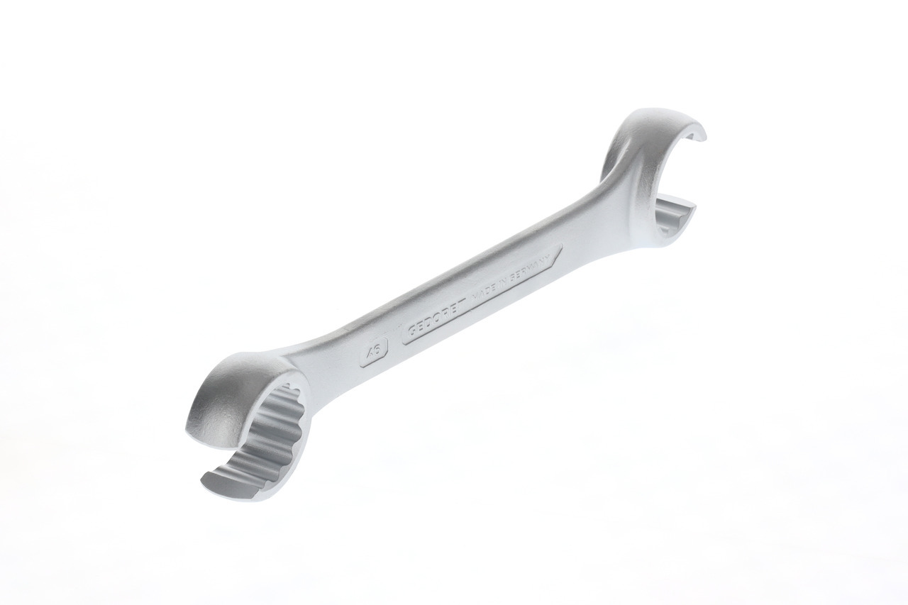 Konstrukcia podľa DIN 3118, Rozmery 8x10 do 12x14 mm s hexagonálnym krúžkom, Oceľ vanádiová 31CrV3, chrómaná, Použitie na hydraulických/brzdových vedeniach, Záver: Hlavice 15° pod uhlom, otvorenie hexagonálne 30° odchýlka, otvorenie profilu UD 15° odchýlka