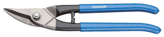 Na krátke priame a tvarové rezy (veľké polomery), Rezné hrany brúsené, Pre plechy s hrúbkou do max. 1,0 mm a pevnosťou 600 N/mm², Lakované na čierno, ramená v modrej PVC povrchovej úprave