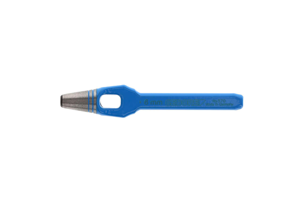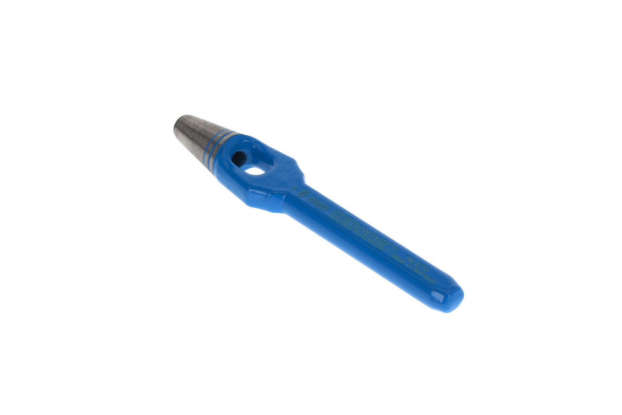 Konstrukcia podľa DIN 7200 forma A, Na vykrajovanie kartónu, kože, gumy, tesniacich materiálov a iných mäkkých materiálov, Úzka hlava klieští na ťažko prístupné miesta, Rukoväť lakovaná na modro