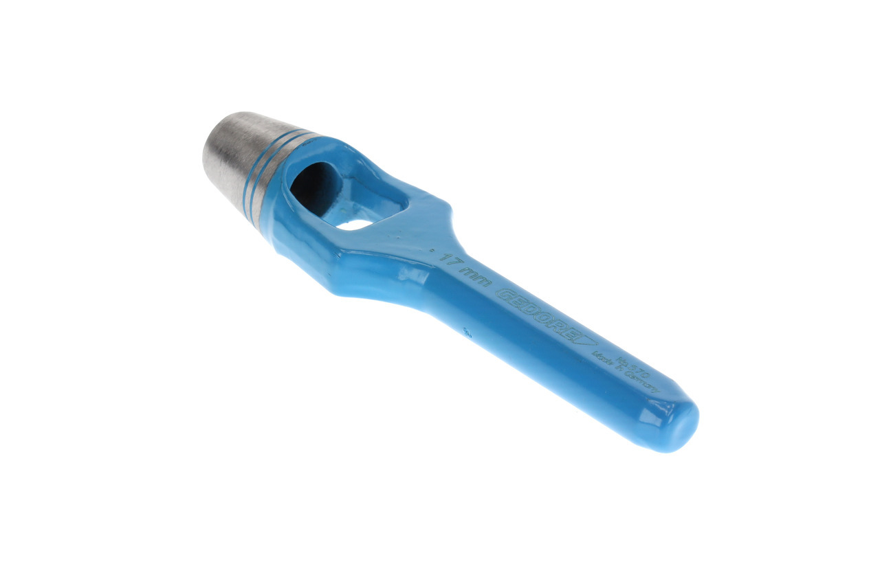 Konstrukcia podľa DIN 7200 forma A, Na vysekávanie kartónu, kože, gumy, tesniacich materiálov a iných mäkkých materiálov, Úzka hlava klieští na ťažko prístupné miesta, Rukoväť lakovaná na modro