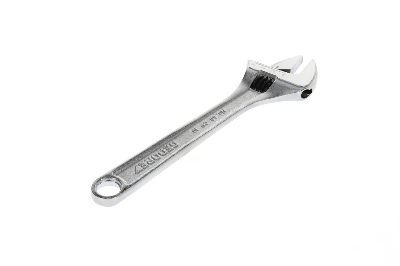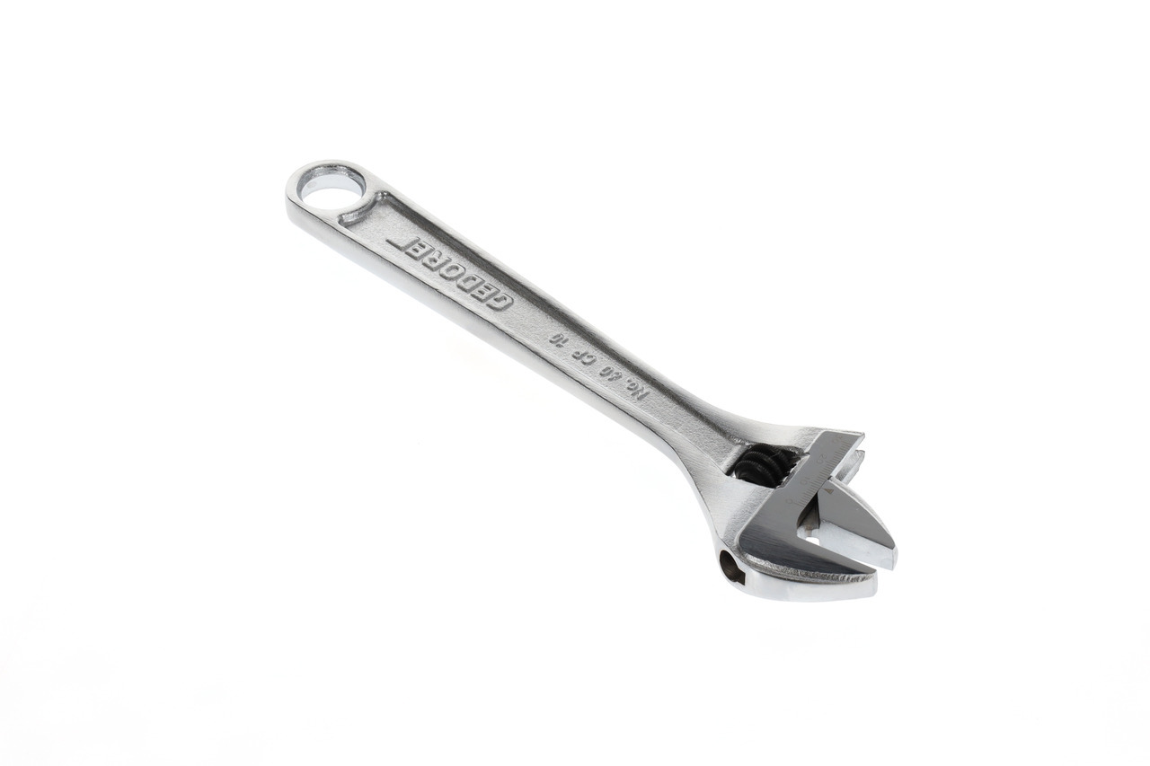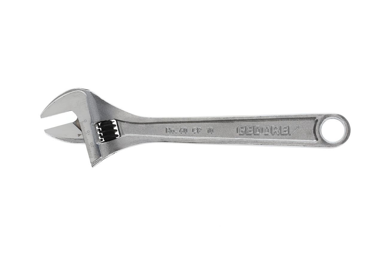 Vykonanie podľa ISO 6787, Pozícia čeľuste 15°, Model švédsky, valček s pohonom na ľavú stranu, So škálou nastavení, Oceľ chrómovo-vanádiová, Chrómované, leštené hlavy, Chrómované, S otvorom na zavesenie