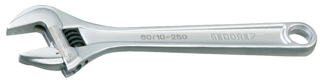 Vykonanie podľa ISO 6787, Pozícia čeľuste 15°, Švédsky model, valec s ľavostranným pohonom, So škálou nastavení, Oceľ chrómovo-vanádiová, Chrómované, leštené hlavy, Chrómované, S otvorom na zavesenie