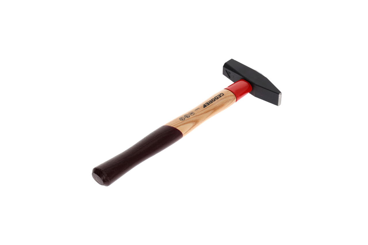 Hlava kladiva kovaná podľa DIN 1041, Dvojito vyrezávaná rukoväť z jaseňa podľa DIN 5111, s dodatočnou dlhou ochrannou manžetou z kalenej ocele, Prostredníctvom objímky, klinového krúžku, zabezpečovacej podložky a skrutky do dreva, hlava kladiva a drevená rukoväť tvoria jeden celok, ROTBAND-PLUS osadenie rukoväte, vysoká bezpečnosť, dlhá životnosť, najlepší pomer ceny a kvality