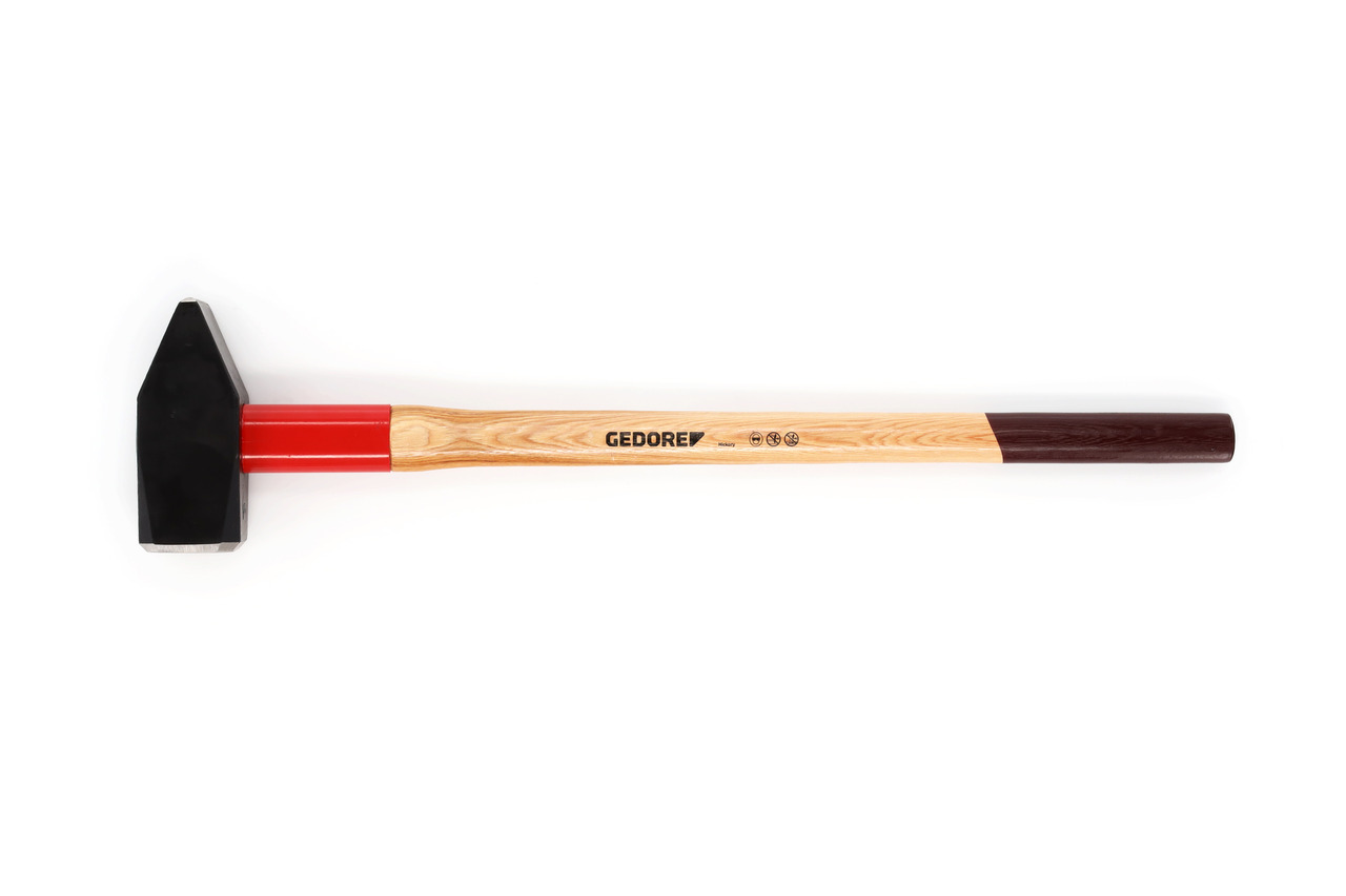 Hlava kovaného kladiva DIN 1042, prostredníctvom objímky, klinového krúžku, zabezpečovacej podložky a skrutky do dreva, hlava kladiva a drevená rukoväť tvoria jeden celok, Rukoväť hikorová DIN 5112, s dodatočnou dlhou ochrannou manžetou so železnou rukoväťou, ROTBAND-PLUS osadenie rukoväte, vysoká bezpečnosť, dlhá životnosť, najlepší pomer ceny a kvality